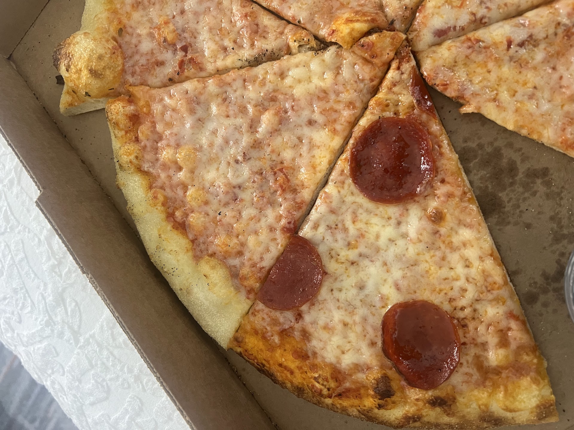 We basically just paid $30 for a single 14â super thin crust pepperoni pizza; 25-50% more expensive than top pizzerias like Lou Malnatiâs, for pizza thatâs just one step up from Dominoes and Papa Johnâs.