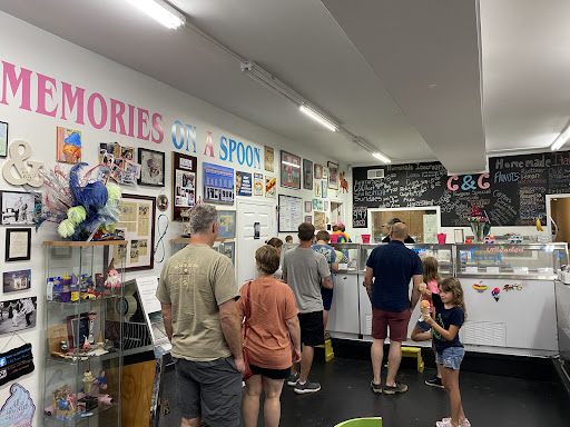 If the ownership of this place was different, it would be a great joint. Atmosphere was OK. Clean bathroom, old time jukebox, my kids loved drawing on the chalk wall. The owner has written, in very small print mind you, if this is their whole gimmick, "Free Harassment" on the busy chalkboard behind the counter. We didn't notice that before my wife called an ice cream that looked like strawberry, strawberry and got the third degree from the owner about how it was PBT (I forget now, three flavors combined) and he made her try it. She had mentioned while we waited for the gentleman to get off his phone and come over that they had a banana split on offer and our family had been getting banana splits at mom & pop places from Florida to Maryland/D.C. as our "thing" on vacation this year. The co-owner started preparing the banana split before we actually even ordered it and said something to the affect of "...well she said a banana split..." which is the only reason I had them make it and pay for it. Otherwise I would have been so put off by the "shtick" that we would have taken the kids cones and eaten outside.