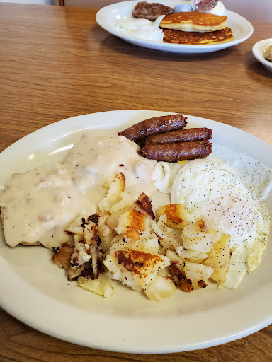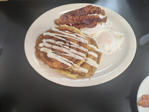 Read moreI love a good breakfast joint. This is not one. Cozy looking and promising when we sat down. Food took forever to come out. Orange juice was like the crap you get out of a spout at a hotel. Not that I expect fresh squeezed but this was worse than the frozen crap. Pancakes literally had to be cut with a steak knife. A serrated friggin steak knife. Ham was mediocre. Eggs were fresh enough and cooked a little shy of the desired over medium. Toast was like prison toast. Like toilet paper thin. Hash was crispy on one side and pretty much hollow and devoid of substance beneath the surface. Servers were cranky. Won’t...