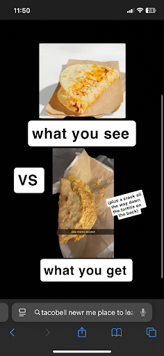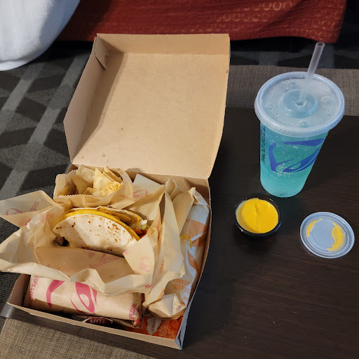Read moreFirst off let me just say that this restaurant needs to be inspected because for far too long has the food been awful. I do not understand how this Taco Bell has this many stars when I have literally never gotten good food from there. Tonight I ordered a Beef crunch wrap , supreme, with a Chalupa and I get home and started to eat the crunch wrap, and there was no meat inside the beef, Crunch wrap supreme The only thing in there was cheese and lettuce. The Chalupa Hardly had any meat in it as well, and it was hard as a brick. I called the restaurant back, And when the employee picked up, I told him I ordered food online and before I could finish, he said what was wrong with it, which was a red flag in my mind He told me to come down and they would replace it. Drove back to town picked up the food opened it up and it was soggy falling apart I could barely pick it up So I threw it in the trash. This seems to be a reoccurring theme with this restaurant, bad food, Incompetent employees don’t know how to make meals properly and just slap stuff together. Whoever owns this restaurant needs to do a makeover...
