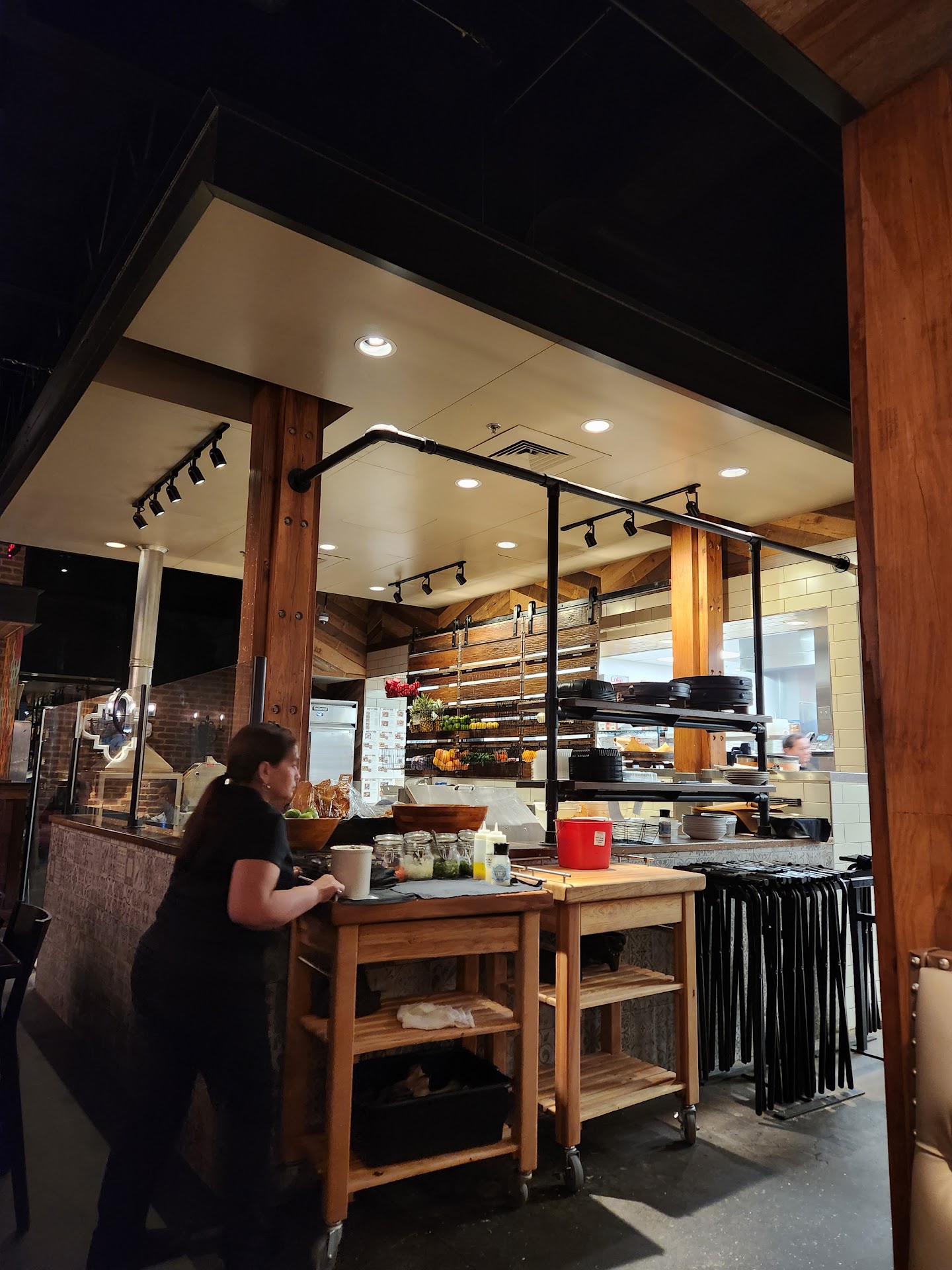 Total time for our experience: 1 hour, 53 minutes spent mostly waiting for seating (20 mins), food (1 hour), and service (sporatic and infrequent). We are aware that our server Kyra (friendly and apologetic, but not very attentive to our table) was burdened with an adjacent table of 10 or 12 who seemed demanding and requested separate checks.