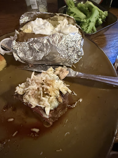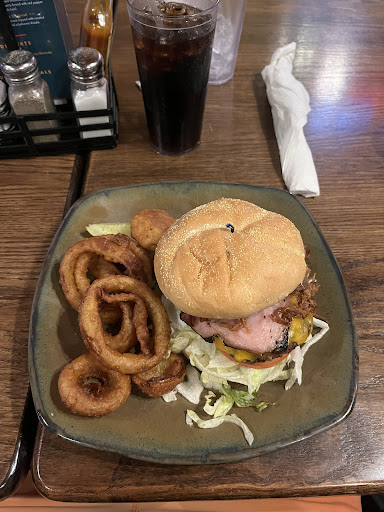 Read moreI happened to pass this seemingly charming steak house on a Sunday night. Ordered the ribs and the half pond Angus burger. The burger was cooked over well-done and dry with little flavor. The portion of the meat seemed less than claimed half pond. The waitress was friendly, however never asked me how I'd prefer the temp of the meat to be when ordering She apologized and said the kitchen usually cook it "medium well". In my case, it was well-done-extra dry. She asked me "is anything I can do for you?" I would've asked if I was the waiter "would you like me to get a new one cooked just right for you?" In my opinion, the friendliness has no substance. The ribs was just OK, with 70% of the meat being sort of tender, then the outer part (the other 30%) was hard and tasteless. The teriyaki veggie side has a flavor dated back to the wild west, kinda wired. The best thing was that the coke, which had abundant flavor and cabonation; the corn bread was fluffy and tasty. The dining area is desperately needing a total renovation. Overall, my experience was "I don't think I'd ever go back" unless a free meal is offered (then I will think about it). It seemed that the reason this restaurant still have a good business is bcs there weren't any real food places in town. I hope my review is not overly critical. For $40, I could've gotten a much better meal at a Silver Diner, or, if locally, at the Moon Shadow Cafe (the best...