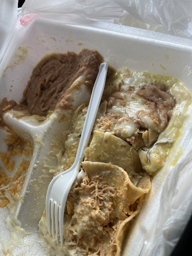 I am sad I spent my money here this was supposed to be a chicken enchilada and it was a bunch of cheese hardly any chicken and some green sauce, not drizzled, but smothered on it. I ate what chicken I could find, but if something wasn’t right if they didn’t have chicken or if they didn’t have the stuff to make it, just let people know cause I would not have wasted my money on it. I don’t trust people enough to send my food back, so I just ate what I could. No lettuce, tomato pico cilantro nada. I do not recommend this restaurant.