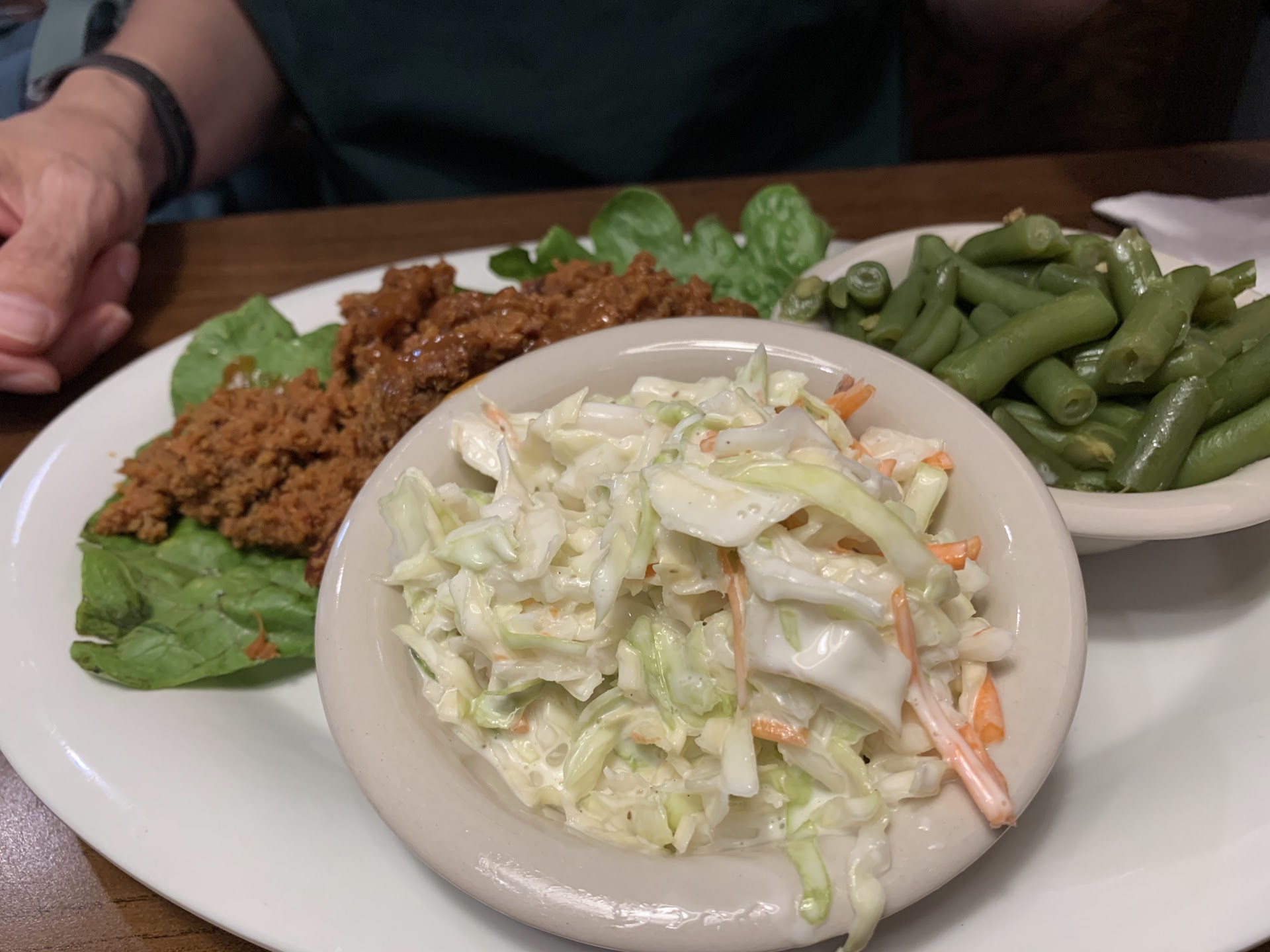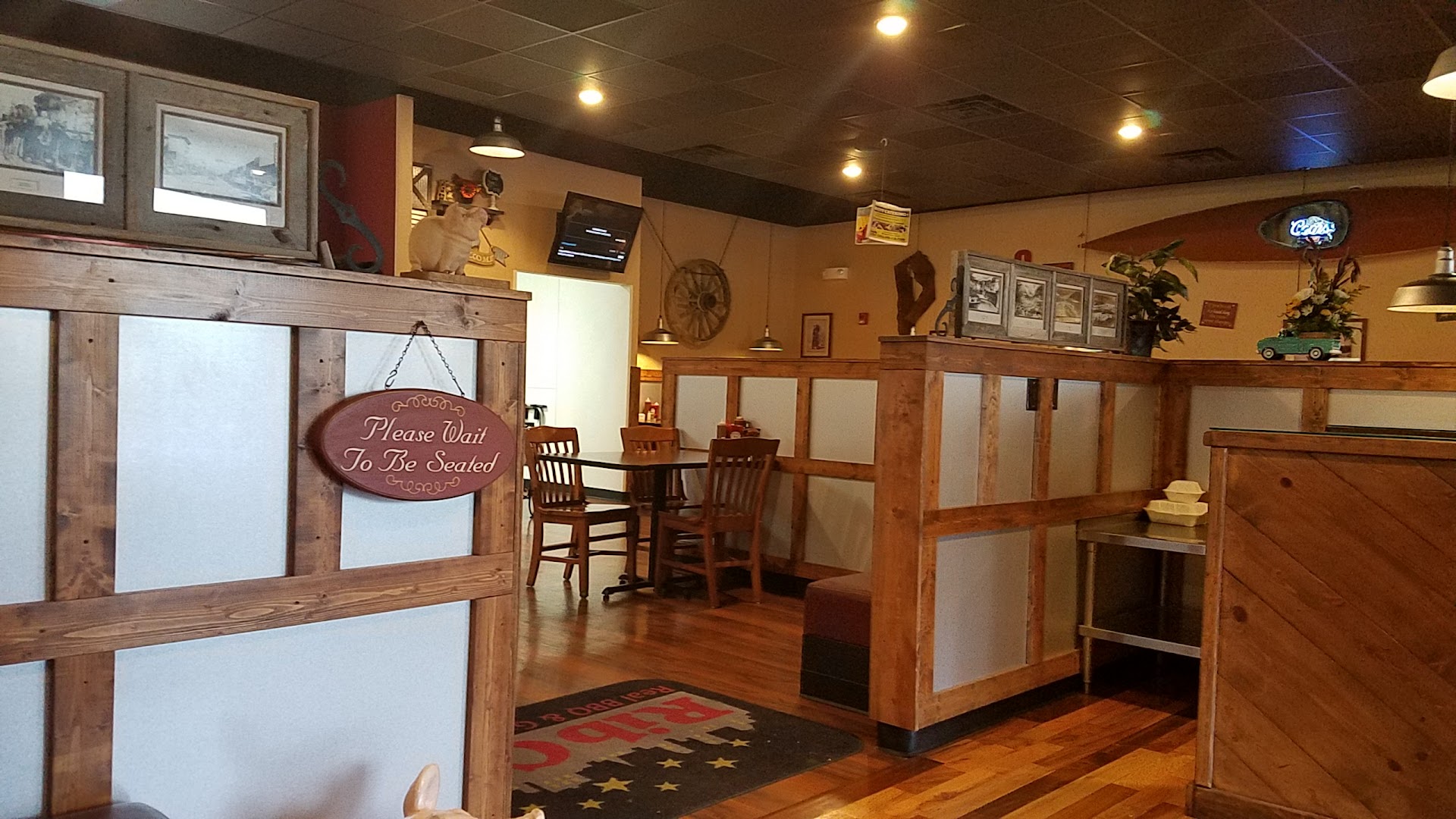Read moreIt was our first time eating here, and my kids are picky, but everyone liked their meals. Very relaxed place. Staff was friendly, and there was a steady flow of people coming in to grab carry out. This is a BBQ place that has you sauce your meats at the table (which is my preference). My wife didn't realize that until halfway through her sandwich, and said that it was a whole lot better with the sauce. We both liked the house sauce, a good balance of sweet and salty and just a bit of tang. You can't really judge a real BBQ place in one trip (unless it's terrible), and we'll be trying stuff from here again. I enjoyed the baby back ribs, and the 1/4 chicken, the smoked turkey was fine. My daughter enjoyed the shrimp and Mac and cheese. My sons enjoyed the ribs, and mini-corndogs. My wife liked the pulled pork once she sauced it. She also appreciated the two sides that were a part...