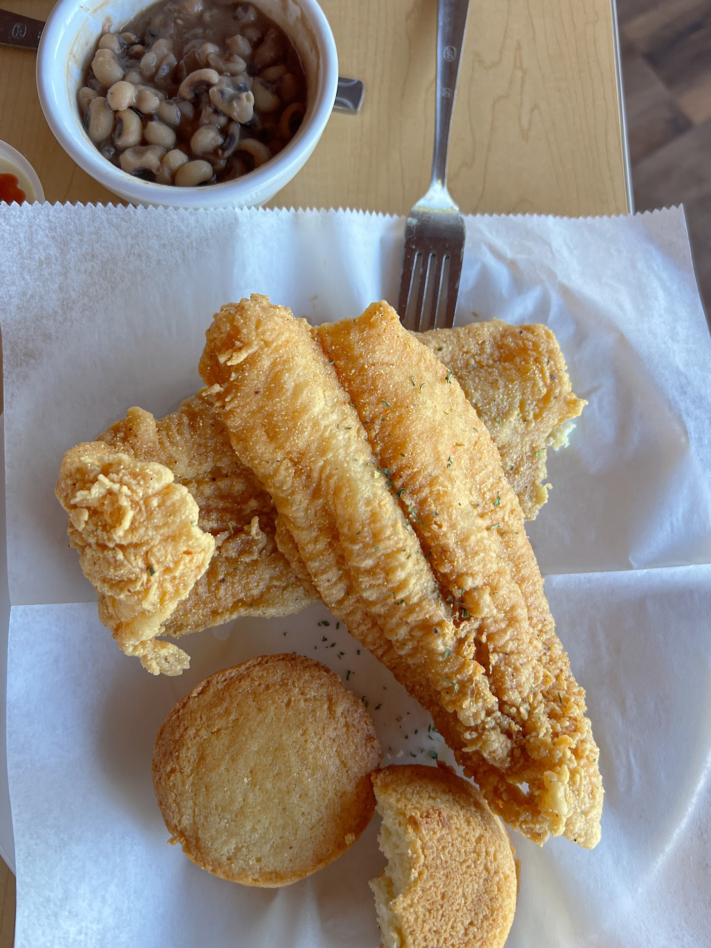 The food is truly the star of the experience. We enjoyed a hearty meal featuring baked chicken with mashed potatoes and green beans, crispy fried fish with cornbread and beans, and flavorful liver and onions with mashed potatoes, cornbread and green beans. Each dish was well-seasoned and comforting, reminiscent of homemade soul food.