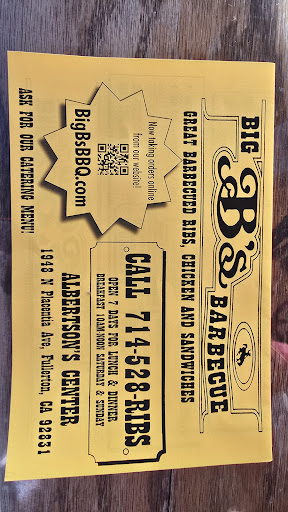 Read moreThey have the BEST BBQ EVER!!!! I go there all the time. When I had any special events at Cal State Fullerton, guests were so happy if Brian was catering the events and they loved the food as well as my family did. My mother told Brian that she is from South Texas and knows great BBQ and told him that his BBQ was as .great as the BBQ in Texas. We try to go there every Sunday after church. If you love BBQ, Big B's is the place to go for great BBQ!!!! They do hrest catering parties, turns my mom turns 95, and will amd we have Big B's cater her birthday party. My family just loves the BBQ. Also, prices are great for what you can get. You will be happy to go...