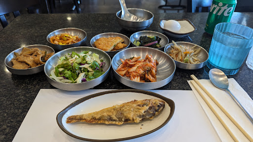 My favorite part of every Korean meal – the banchan! Banchan is the free appetizers with unlimited refills before the meal. California Tofu Grill had a variety of banchan. They have really delicious kimchi with oyster and pancake. Each person also get a fried corvina fish. Love the fried fish.