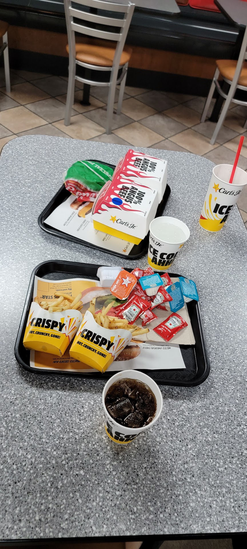 Read morePlace was clean, restrooms clean and paper maintained dispensers. Employees had a smile and greeted me. Gladly took my order. It was prepared expidtiously. Freshly cooked and served within minutes. Carl's always has great food. Been coming to the stores since the 60's. I have to say, their commercials using the mother, her still thinking she "has it" is a bust up. She isnt afraid to do pratfalls. She is a keeper. Dont use her and forget her. Want to see more of her...