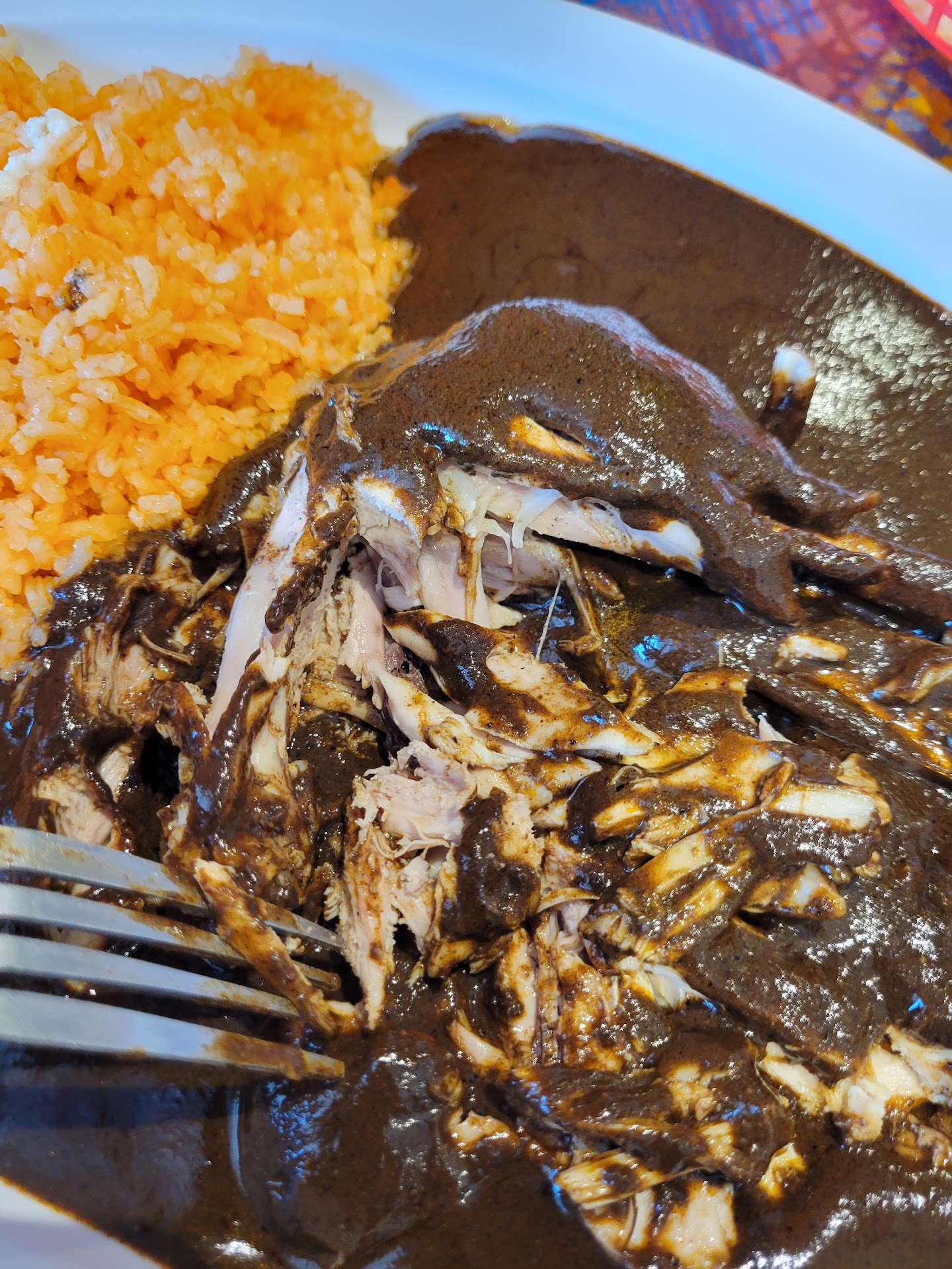 Also, she was very judgemental and offensive. When I mentioned she was non accommodating, it was because I don't eat meat, and before our waitresses have been happy to change up my order. This waitress today said that they couldn't replace chicken for huitlacoche. I wanted an enchilada by way. If y'all don't know how easy it is to change this order then please listen, tortilla, add filling, in my case huitlacoche, roll up, add mole. Done. She said they were not able to do so. Fine, ill do it myself, we ordered enchiladas, no chicken, and an order of huitlacoche, waitress then says, "thats going to be extra". Obviously we know it will be extra, we have been here longer than her. It is common sense too when you order a side of something it will be extra. She kept repeating this various times because we always add Tasajo and other things to our family's plates. She kept saying it over and over. We. Get. It.