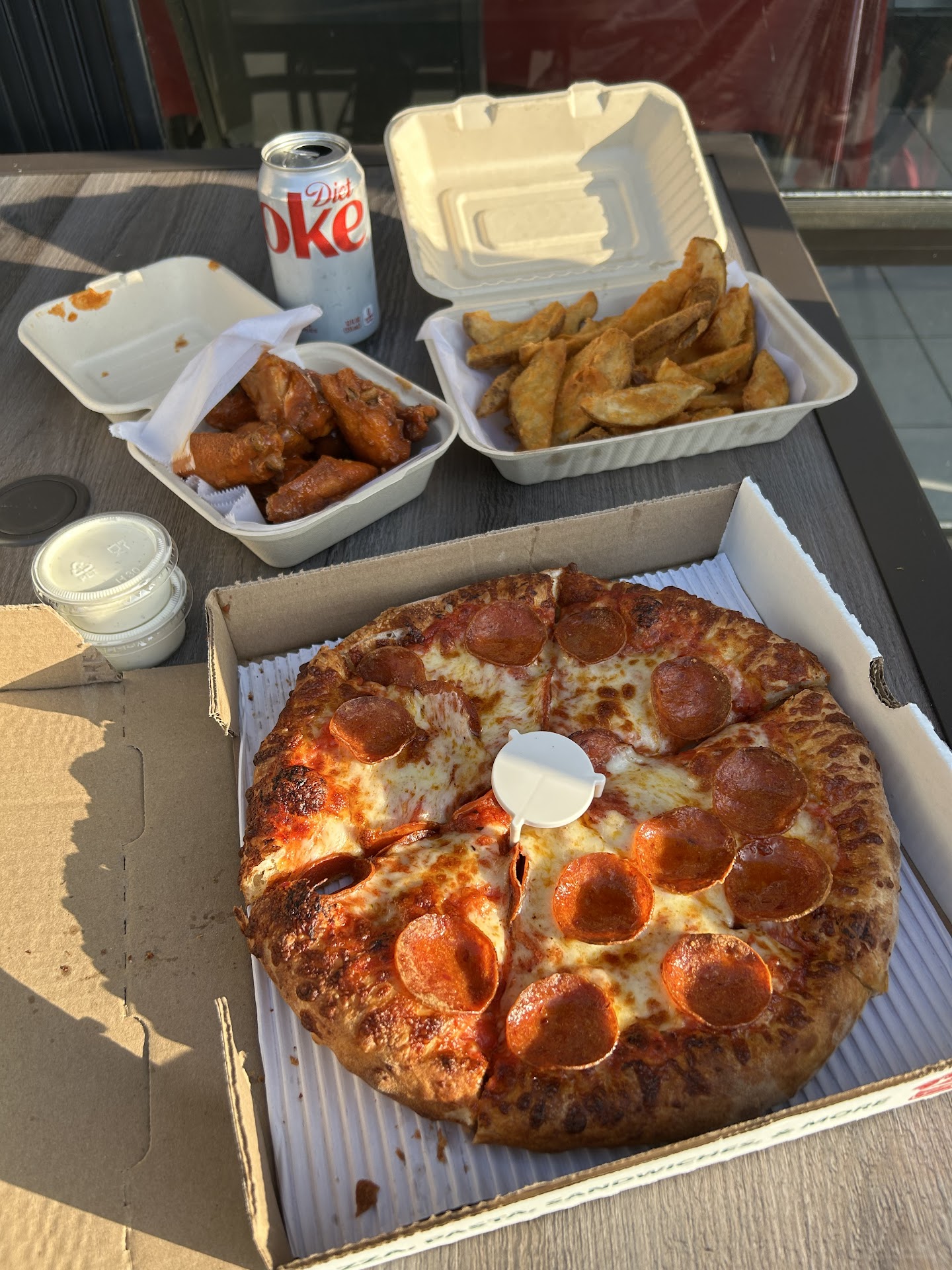 Read moreJust stopped in for the first time, I preface this by saying Im a very 'plain jane' kinda person when it comes to pizza. I got the BBQ Chicken w/ no veg (sauce, meat & cheese. No shame, to each their own😎) kiddo got a plain cheese. So for us the basics are important. Good crust, sauce n cheese. And potato wedges!