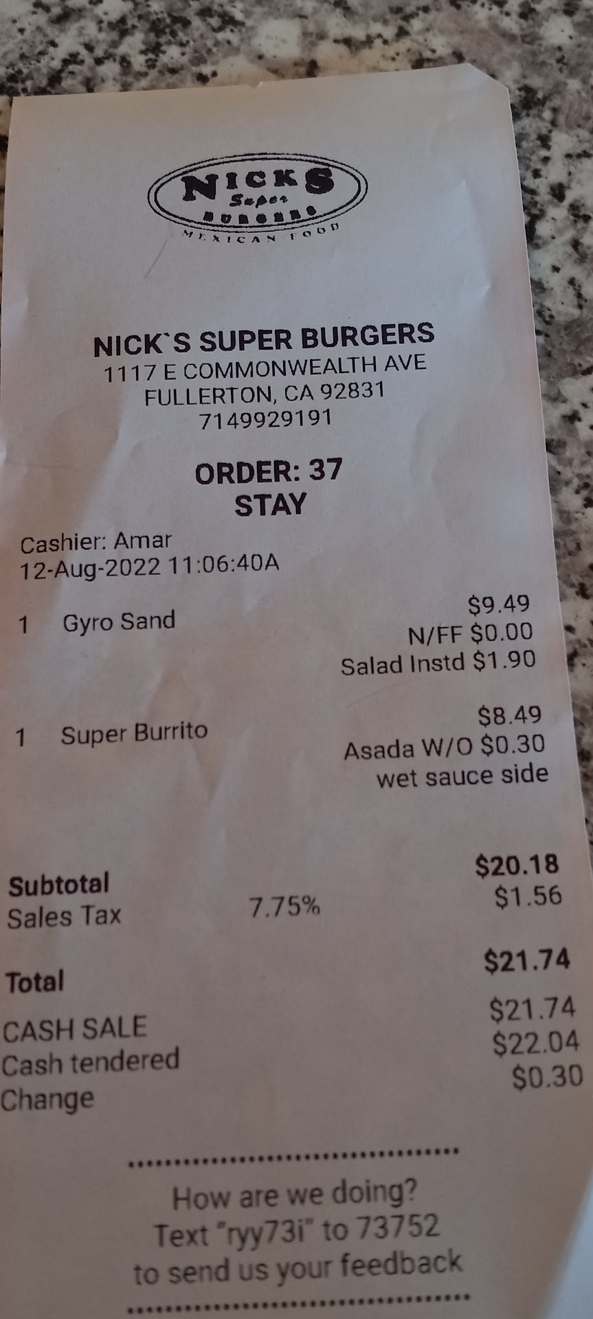 Read moreWow! I am so impressed with Nicks Burgers. This is NOT a sponsored post. I am from Florida and currently live in Victorville Ca. I visited area and Googled hamburger places near me ( Fullerton area) came across this restaurant and decided to choose them, the outside was very well maintained and clean. Outside there was an advertisement of 4 combos including fries and drinks for $24.99. So my family chose that and adding an additional combo. First off the French fries were amazing and hot hot hot, the burger reminds of an old fashion Burger King burger, and the drink was ok. I just had to write a review and express my gratitude to this restaurant and say well done. If Iâm ever in the area again I will most definitely visit again. Thanks Nicks for quality good. Sorry no food pics, but we did visit...