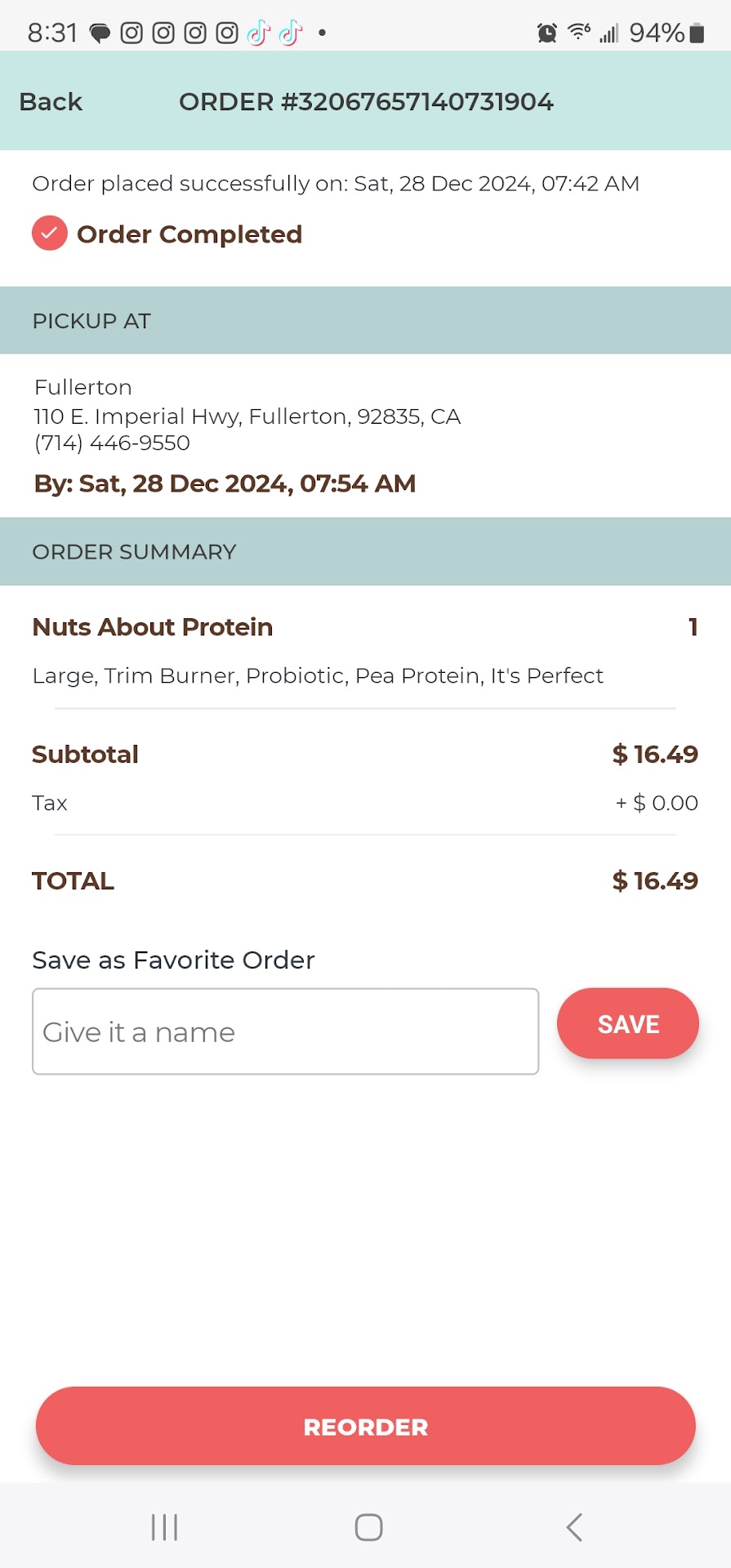 Read moreI come here at least 5 times a week before work and order the exact sameting every time. I ordered the large size Nuts about protein as usual and it was the only thing I had to eat (I drink half for breakfast and half for lunch) around 4:30 pm i started feeling very nauseous. I literally threw up every hour on the hour all night long. I've only had food poisoning one other time then this, and this one was way worse. I'm extremely upset that this happened to me and that their isn't some protocol to make sure they have proper dates for when their food goes bad. I was an extremely loyal customer and now I'm traumatized to ever purchase anything from this place again. Mind you, I'm usually spending 13-16 bucks on these smoothies, I would expect the best quality for that price. I'm not one to complain or make alot of bad reviews but when it come to food poisoning I need to share this so no one else gets sick and for Robeks to hopefully have a better strategy to follow the health department rules and...