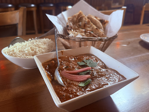 Now onto the food — and wow. I ordered a classic setup: a rich, fragrant chicken marsala curry , a bowl of fluffy basmati rice, and a basket of freshly baked naan. The curry was hearty, deeply spiced without being overwhelming, and had that slow-cooked depth you dream about. The naan was warm, soft, with just the right char, perfect for scooping every last bit of sauce. Fresh cilantro and pickled onions on top added a nice finishing touch.