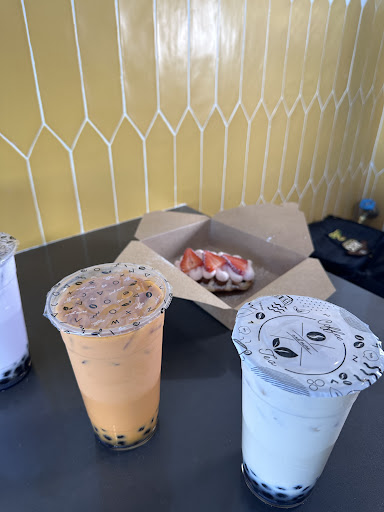 This fresh little caffe is tucked into the corner of this shopping center on Raymond in between Wilshire and Commonwealth and currently marked by a festive little balloon arch. They recently did a little EDDM mailing so if you're local you may have recently received some coupons but the pricing is sweet even without the coupons. They will take your order at the counter and they do accept cash and I came away with a croffel and a boba for less than $5. They also have everyday offer of buy one croffel get one for a dollar so I can see this being a great spot to stop and pick up "one for me and one for you" on your way. My order was ready faster than I could snap more than 5 pics so get ready for instant sweet treat gratification. I went basic on the croffel and Taro boba and I would be happy to recommend both to you. The croffel was that touch of sweet/ not too sweet that is the peak of what you want in a quick snack. The texture was perfect, crisp on the outside, flaky on the inside. I always opt for less sugar when it's an option on my boba and it is here so it was just how I like it. They had plenty of bar seats making this a really flexible location for a party of one or more. They also had a little caffe table with chairs and they are directly in front of the handicap parking. They have the plastic seal situation for the lid so you get the satisfaction of stabbing your drink before you enjoy it. Very enjoyable atmosphere overall and many more flavors to try on...