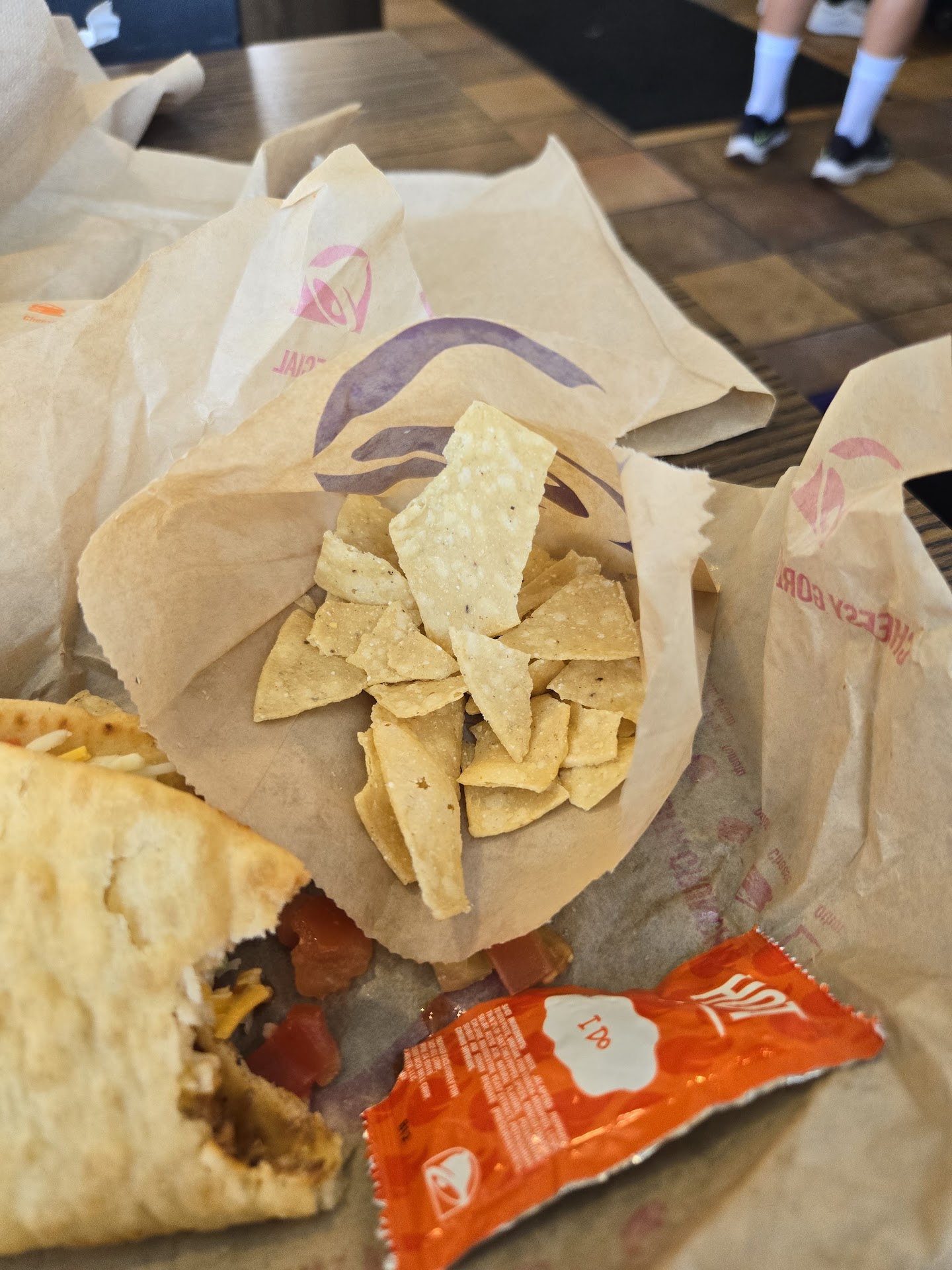 I have the Taco Bell Taco Lover's Pass and this is the 15th day of eating one taco per day. Let me tell you that the Doritos Locos Taco Supreme here is the best I've had in the last 2 weeks of Taco Bell daily taco!! I am impressed at the freshness and crispy crunchy shell. One bite and listen to the music of the taco shell! The taco was filled to the rim and loaded evenly with all ingredients.