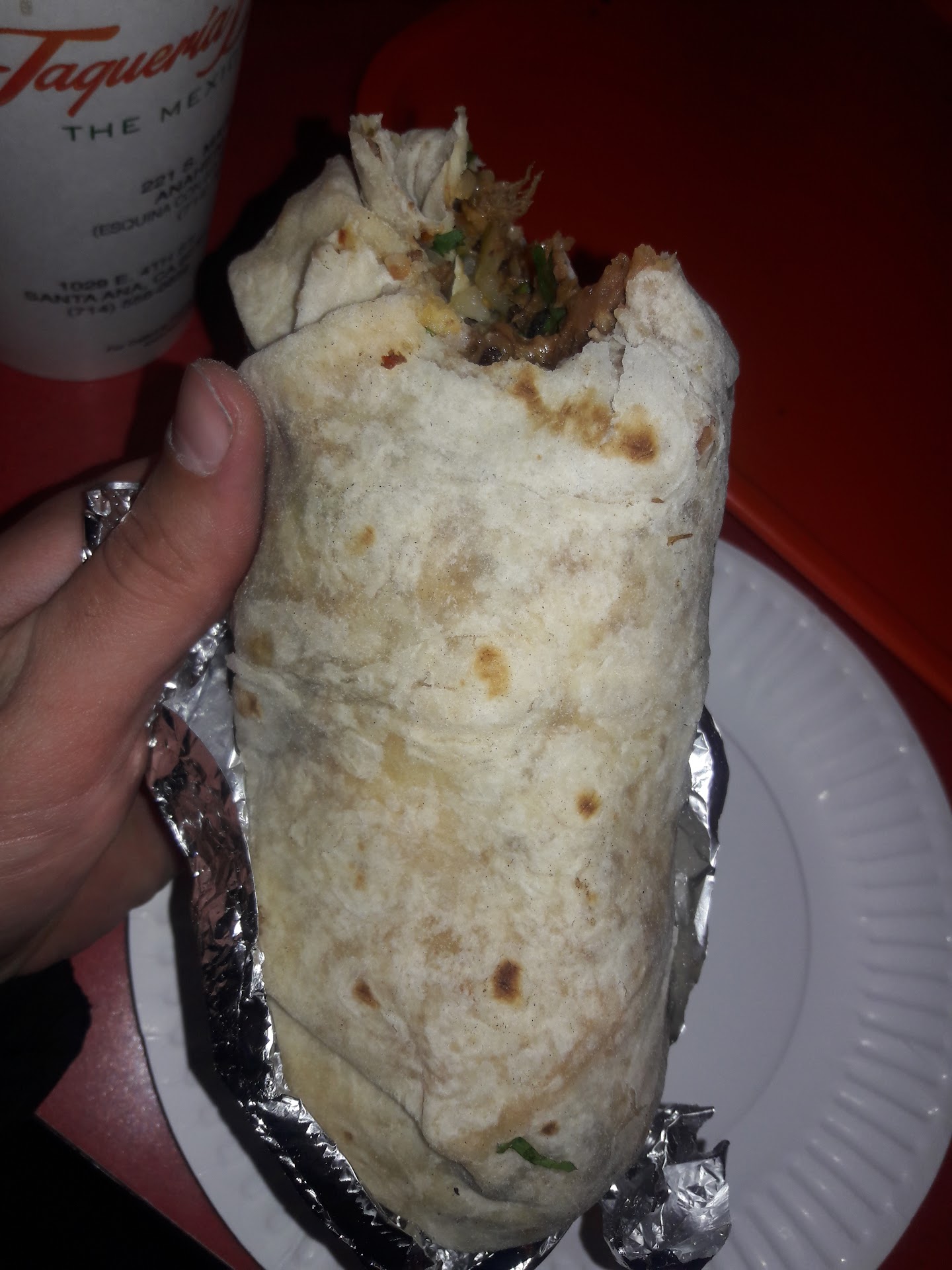 -=-All Meat Burrito with Pollo and Asada-=- I think I got the most fat-assed of fat-ass burritos you can ever get here. Don't bother taking this monster home, since the time you spend getting there will get the tortilla soaking wet of grease. I'm usually getting the standard carne asada, but one day my homey ordered both polla and asada, and I thought GOD THAT'S BRILLIANT. This will get you damn full. The meat tastes fresh, but the oiliness can be a bit much. Get the tacos if you are of the...