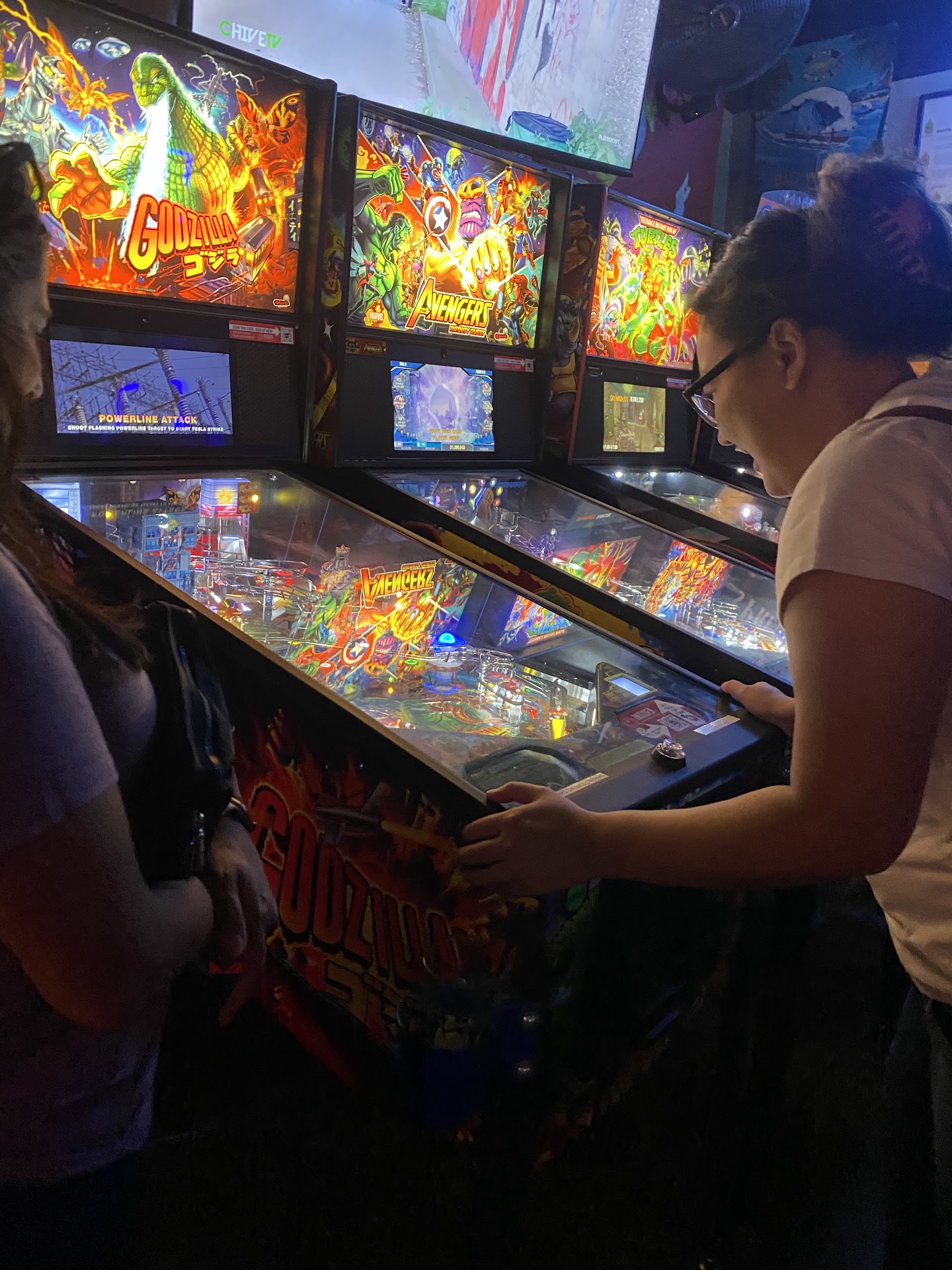 We had just missed the pinball tournament, but somebody gave us some pinball tips and bought us our first round of pinball.