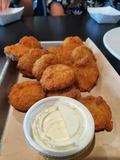 FOOD: The starters were excellent. The fried calamari was maybe the best I’ve ever had. Light crispy batter around fresh, tender squid. We also ordered fried pickles, which were outstanding. I went on a fried food binge and got the fried red fish with hush puppies and fries. The batter on the fish had some nice Cajun seasoning, and the fish was tender and flakey. The hush puppies were exceptional and the fries were crispy. My wife ordered the grilled red fish and could only eat half of it because the portions were so generous. She ordered the coleslaw as a side, and I shared my fries for a portion of her salad, which was creamy and fresh. My oldest daughter got the boneless wings and thought the chicken was a little tough, though the seasoning was spot on and ranch dressing had a nice touch of dill. My youngest daughter, a vegan, ordered the veggie lo mein and found it to be too salty. We all drank sweet tea and found it to be cloyingly sweet. It was served in disposable styrofoam cups, which was a drag.
