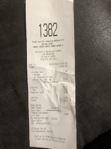 Read moreWe've only gone here 3 times. This is the worst McDonalds I've ever been to and I wont be ever going back. I gave them the benefit of the doubt but I'm done with them. The first time was during mid day, order was correct but food was luke warm and there was a CANDY WRAPPER IN OUR BAG WITH OUR FOOD!!! Second time was at night about 8:30pm, I asked for 3 large sweet teas, and 3 mcdoubles. They didnt repeat my order or even give me a total. Went to the window and still didnt repeat my order, just told me a price and handed me my receipt after paying. I should have looked at the receipt but I didn't. Was handed our food and I asked where our sweet teas were. He rang us up for 3 LARGE FRIES instead of 3 large SWEET TEAS! We parked and I went to the doors and knocked. They had their doors locked so a manager came out, I explained what happened and she gave me a refund on the fries and made me purchase the teas. 3rd and final time was a few days ago when it was about mid day again and I ordered 3 mcdoubles, I clearly said ONE OF THOSE WITH NO KETCHUP OR MUSTARD and ordered a few other things too. Paid and got our order and they made ALL the mcdoubles with no ketchup or mustard. I'm just done with that place. Never going back. Would give it 0...