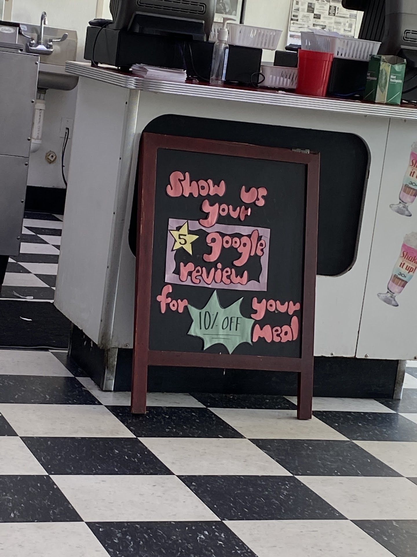 On July 28, 2023, Don and I went to Hwy 55 for a second time, the first time we were quite impressed with our waitress and food. We decided to go back. We had a coupon for a buy one and get one free milk shake. Hurrah, sounded good on a HOT day . They have a variety of 30 plus milkshakes, how exciting and what flavor should we get? We looked over the flavors and decided. Our waitress came and we told her what we wanted and she said, "Oh, I'm sorry we are out of ice cream today" . WHAT!!! Oh no,- okay , disappointed, so we ordered something else.