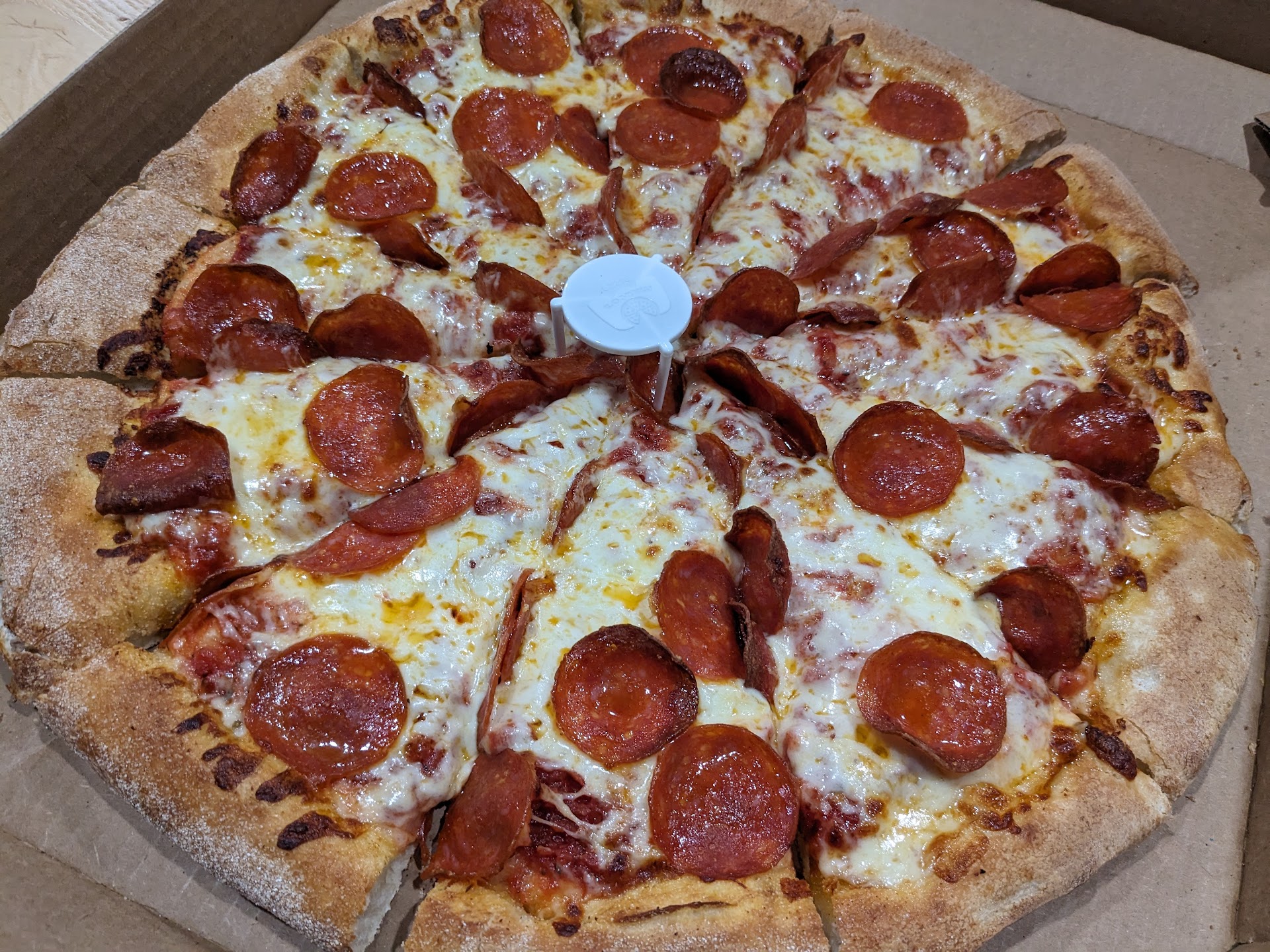 The last time we ordered from this location, I got a large ham and onion pizza. It had 4 (FOUR) little slices of ham on it. It looked like someone took a round slice of Canadian Bacon and cut it into quarters. It was just sad that that’s how they sent it out to a customer.