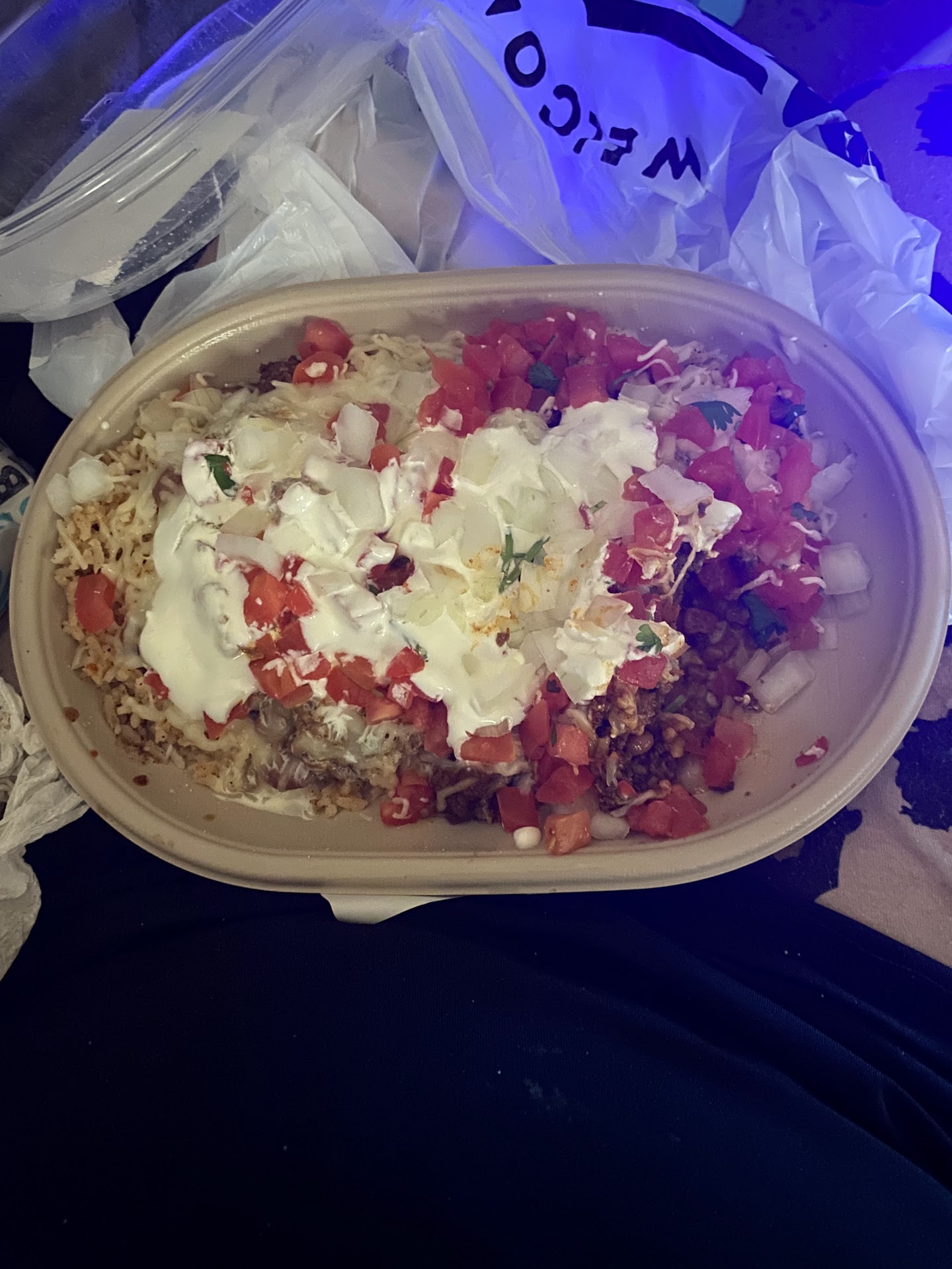We made our selections and I approached the order area. The male employee who was taking orders, looked at me and said, "What do ya want?" Rude. I told him and he immediately started making it wrong. I corrected him and with a sigh of disgust, threw the tray behind him and said quite sternly, "I asked you!" He didn't listen as I was quite clear. We were asked if we wanted queso by one of the other employees. We said we did. To which another male employee said, "Oh, too bad, we don't have any!" Then they all laughed.