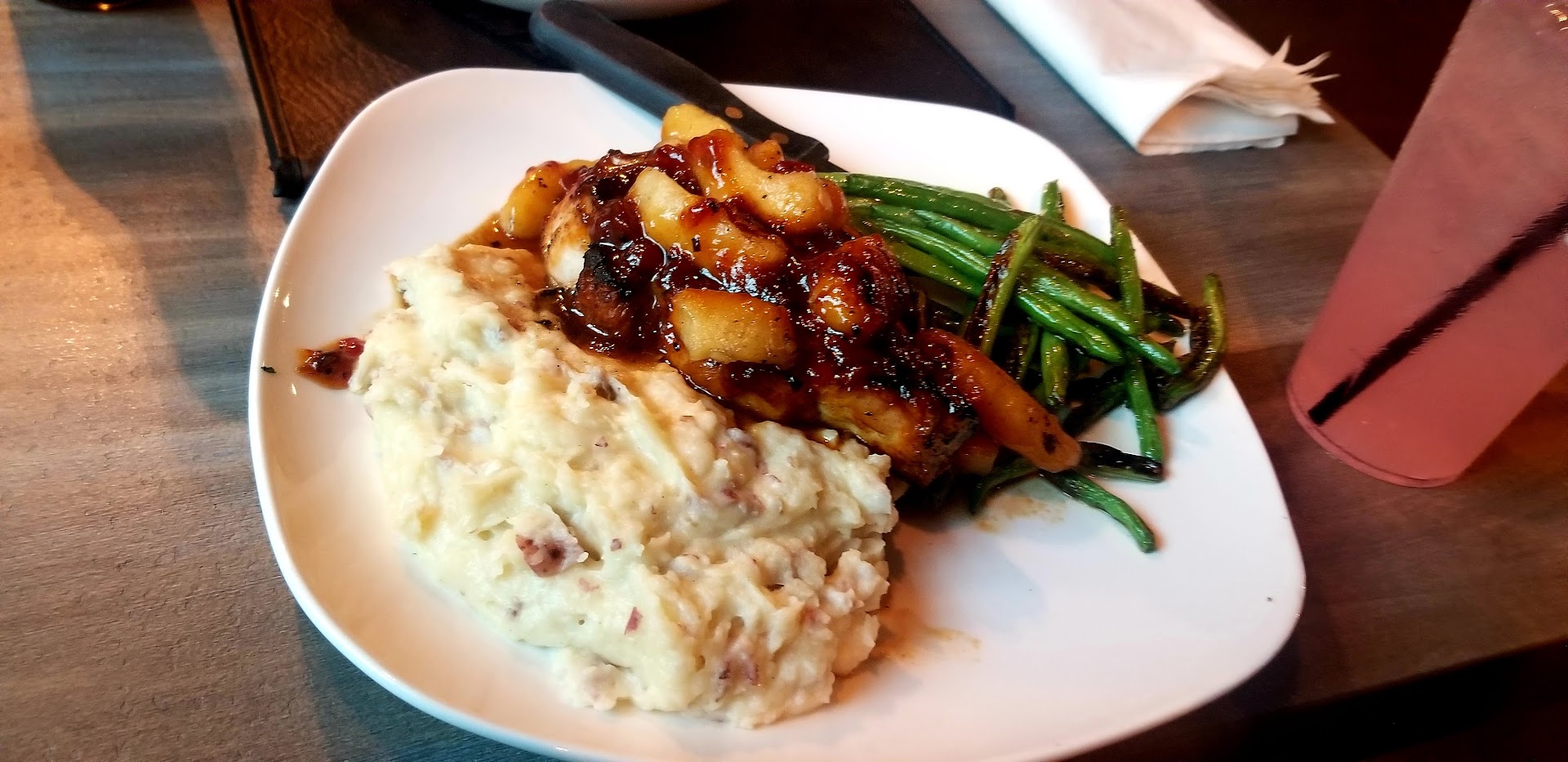 Read moreFirst time trying this place and I can’t say I was too impressed with the drinks and some of the food items. It was 5 of us on a Friday night so it was a busy night but it was still a nice atmosphere. I’ll start with the good, I ordered the pork chop which was really good it was surprising flavorful and the apple sauce was amazing. My husband got the Cajun pasta which was also very good with the exception of the chicken (it was very dry) but the sauce was creamy with a kick of spice. Now the cons, the raspberry chipotle wings although cooked really well the sauce was just sweet it was more of a raspberry jam, not what I was expecting. The worst part of the night were the drinks, the first one was called strangers in the night and it was pure syrup, it tasted like a grape cough syrup, I sent it back and even though they remade it and it was somewhat better it still was on the sweeter side. Not to mention there was like zero alcohol in the drinks, I finished that drink plus an espresso martini and didn’t feel even a little buzz. One of my friends ordered the Christmas mojito and even though it tasted really good there was also like no alcohol. So bottom line some of the food was good, some were disappointing and the drinks are just not worth...