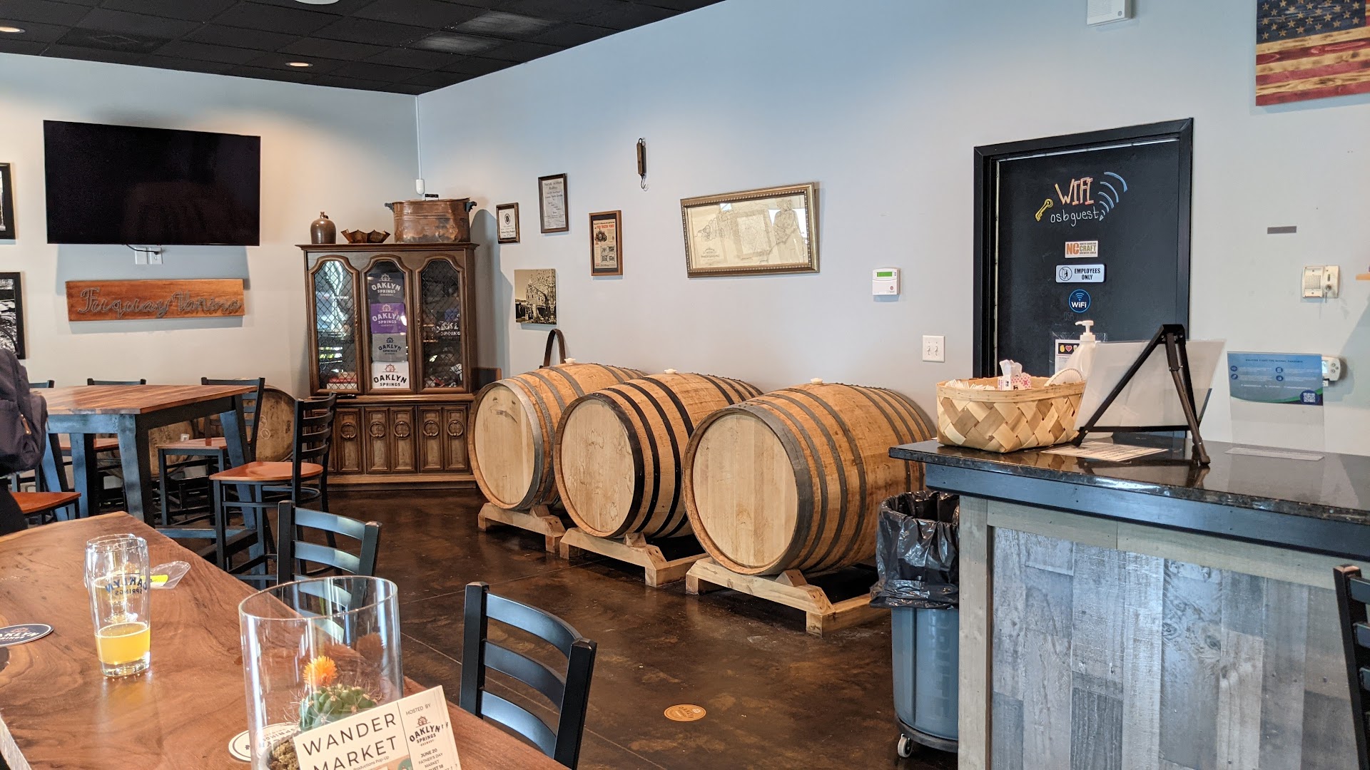 Read moreCool spot away from traffic. Nearby pizza and sushi for food and they typically have a food truck. Beers are why you come here though, of course, and the rotating menu is always changing. They do a great job with their fruity, west-coast, and hazy style IPA's, the sours are good too, and they have other styles if you're not into those. (I won't comment on the other styles since i'm not into other styles :). Owners are cool, the head brewer is cool, bartenders are cool, scenery is cool, tables are old oak and beautiful, and they have games, darts, big checkers...etc. ...