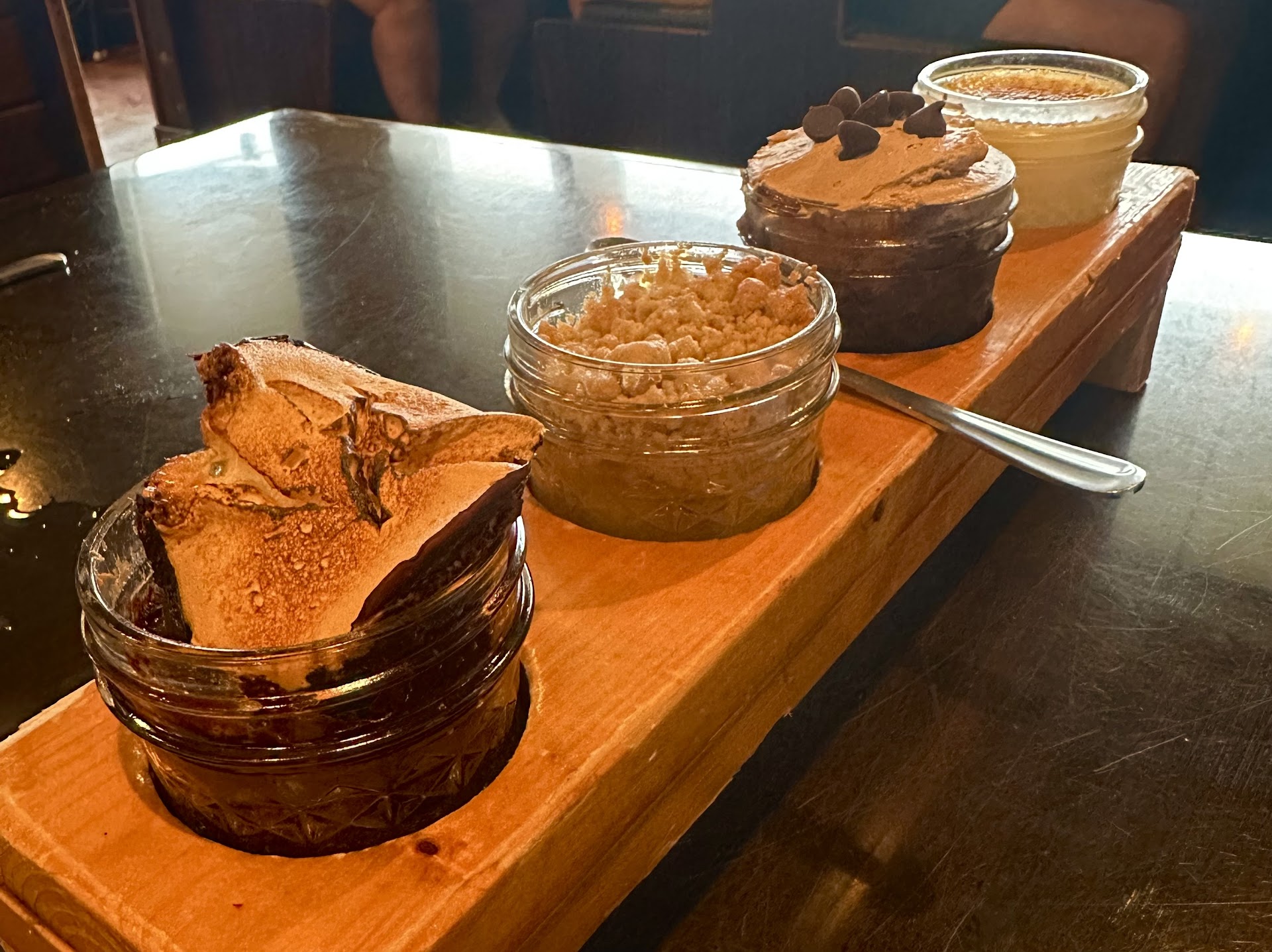The dishes we enjoyed: The Dessert Flight - we aren’t sure what they were since DoorDash doesn’t give a description of what is included in the “flight,” but each of the four desserts was delicious. There was a tiny plastic ramekin of a bitter chocolate mousse type thing included as well. We assumed it was intended to be a topping for one of the four desserts, but we had no idea which.