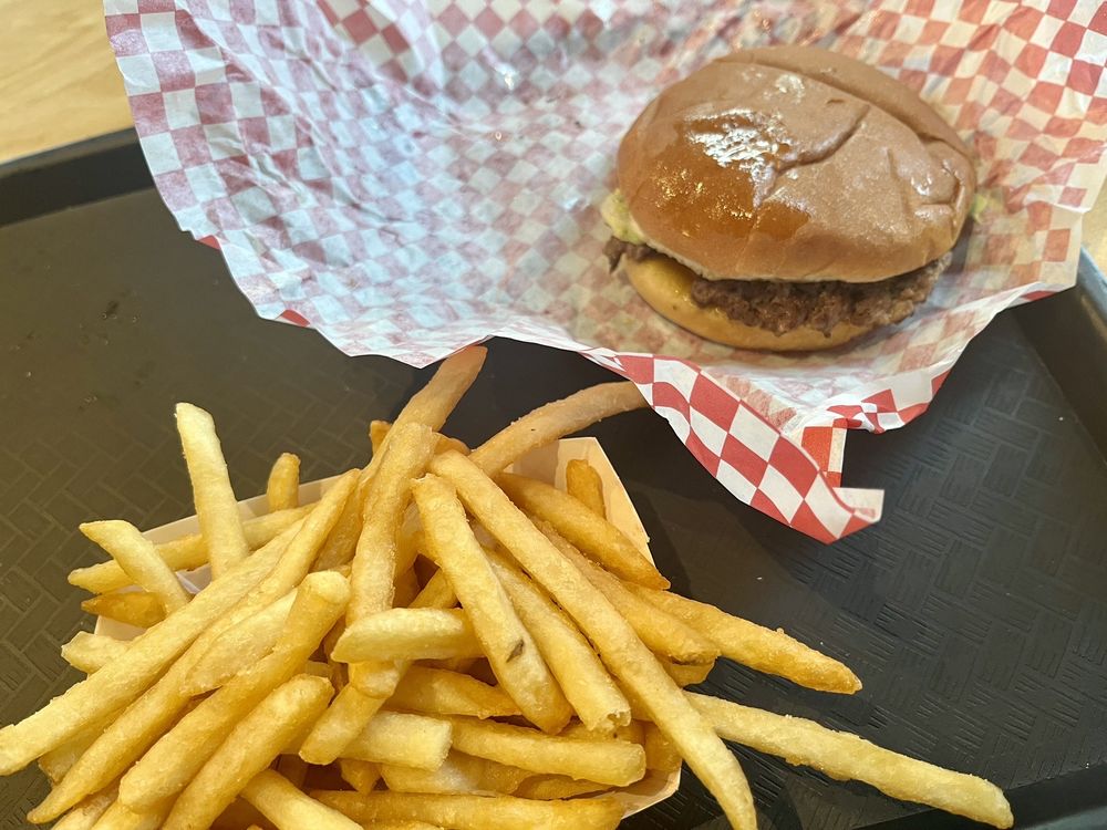 The burgers are smash burgers -- think like Steak n Shake or Freddy's. That means if you're really hungry, you'd probably do better with a double!