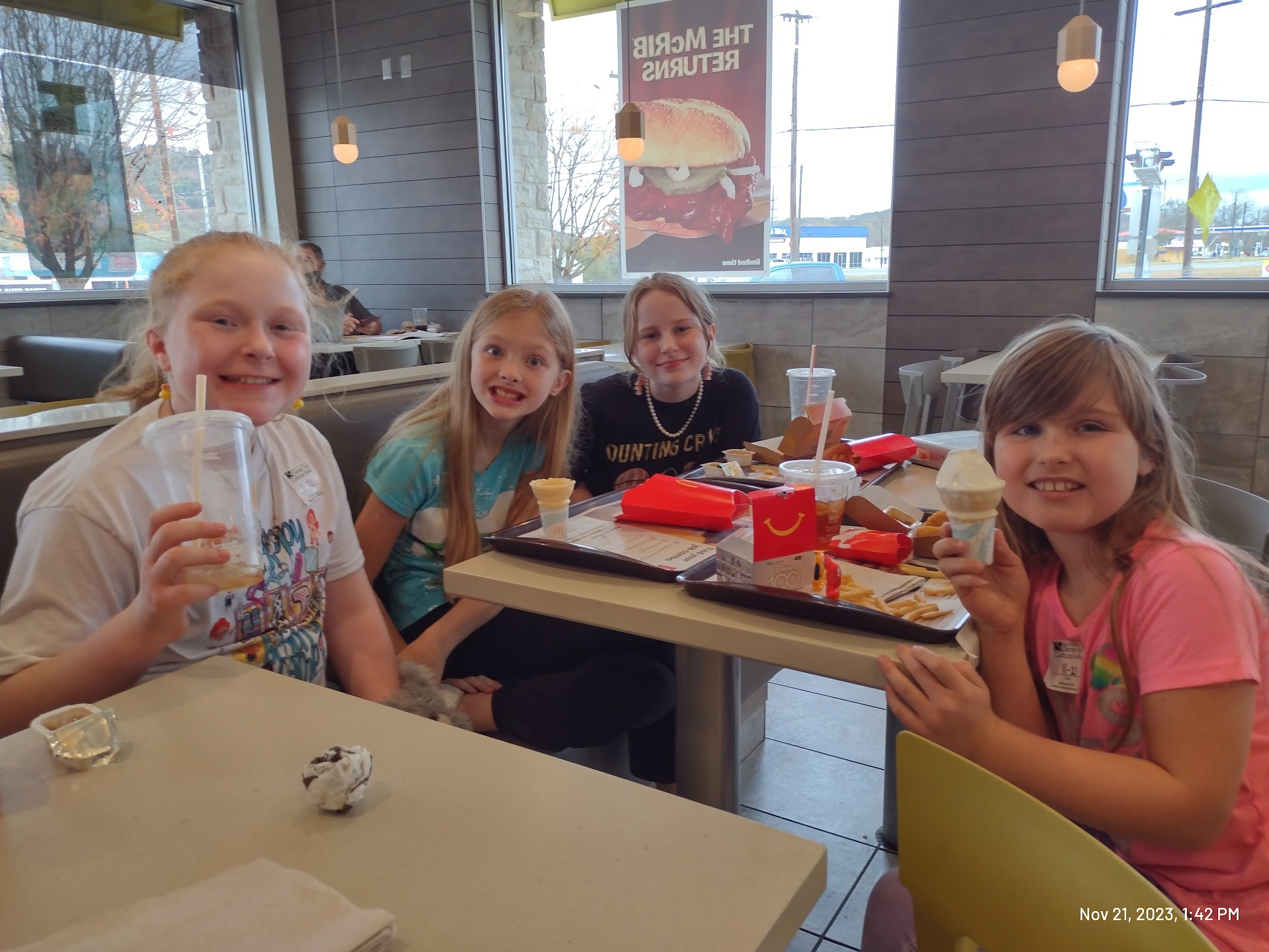 Last week I took my 9 year old granddaughter and her 3 cousins (ages 8, and 12 year old twins) here for lunch. The food was good. The staff was friendly. The restaurant was clean. The 8 year old dropped her ice cream in the floor and a staff member cleaned it up and provided her another one free of cost. Great customer service!