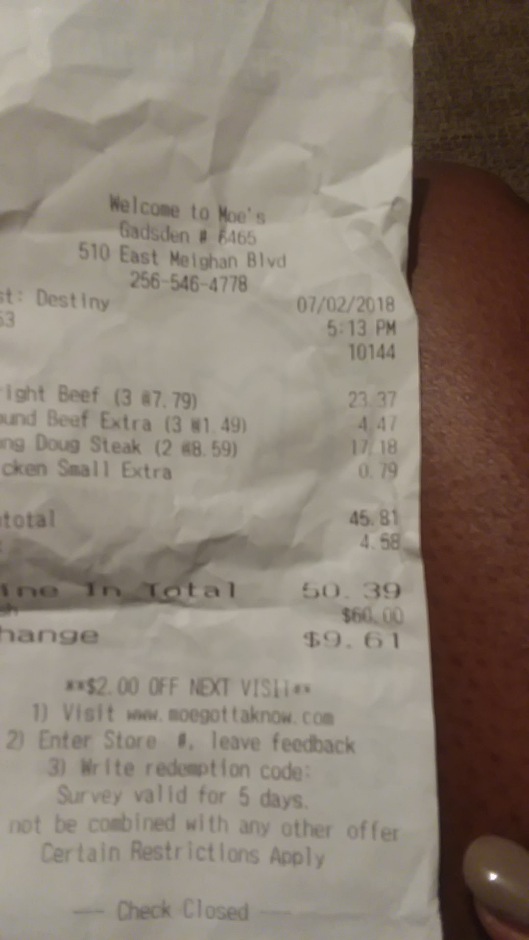 Read moreYears ago I woulda gone 5 stars, but after my trip to Moe's last week.. I don't think I'll be going back for a very long time.