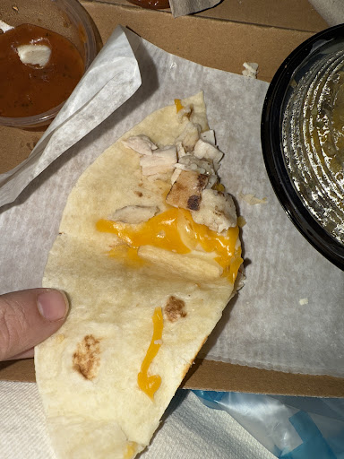 Read moreThis my second time eating at the Tropical Smoothie Cafe in Gadsden. Both times I ordered a quesadilla. The first time they forgot the sauce that goes with it. The second time they barely put anything in my quesadilla and they didnât give me a fork for my side of corn. Itâs called a three cheese quesadilla- I think they meant like three shreds of cheese. Worst Tropical Smoothie Cafe on the planet. This picture is the best piece of the quesadilla that I could show (still hardly anything in it) the other 3 pieces had practically nothing in them at all. Go to Tropical Smoothie and order the quesadillas if you want a...
