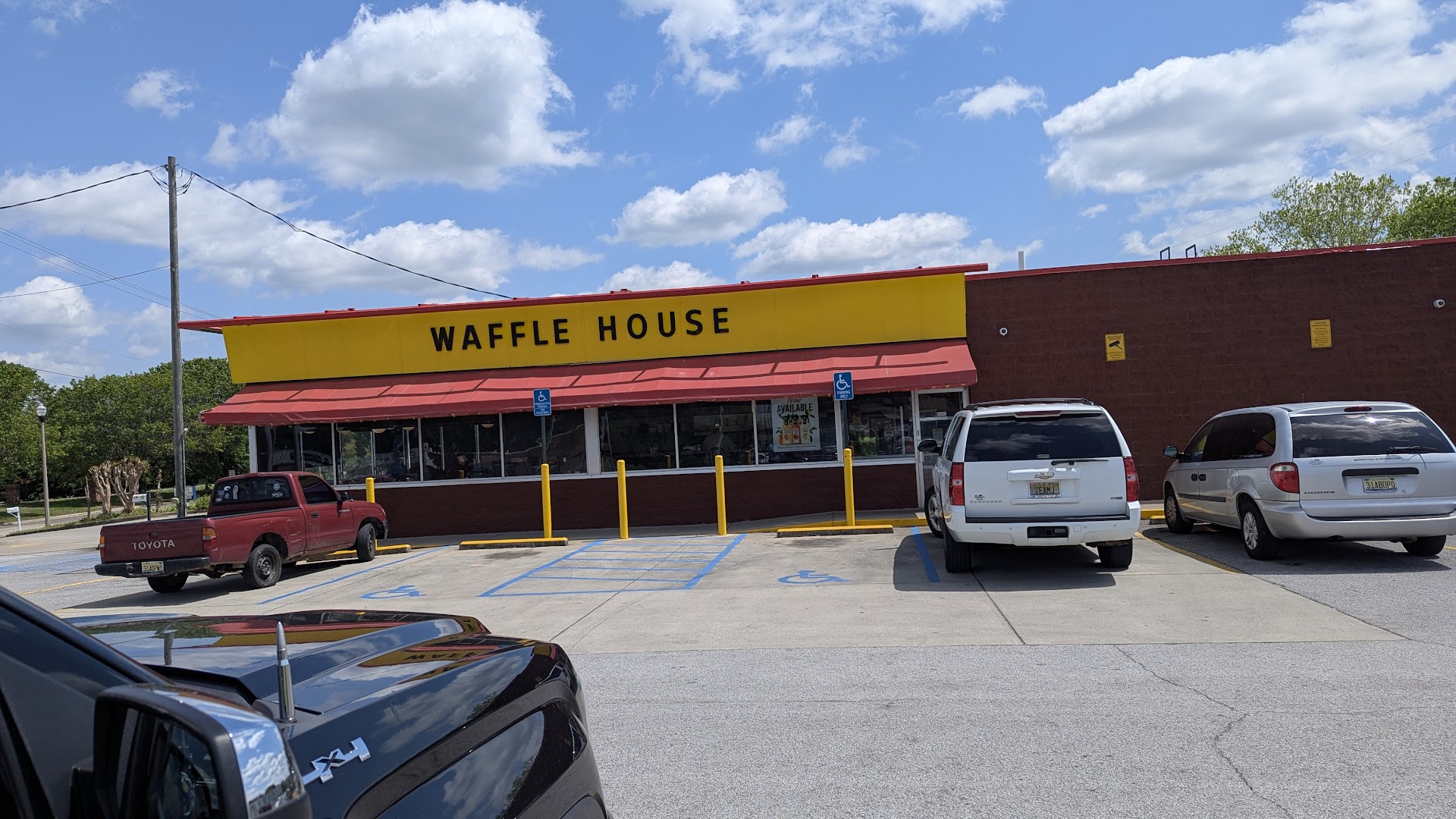 They were out of straws. Wait... let me rate the food first, then I'll tell the story of the hunt for straws. The food was a little greasy and when we ordered one waffle the waitress said, "Okay," but didn't put the waffle on our order. That's the bad. The good was that the food was still delicious, just a little greasy, and the service was good. We like Waffle House coffee and that's what they have here; Waffle House coffee. Overall a 4 out of 5 and I rated accordingly. My wife got a sweet tea to go. When the waitress brought it she apologized for them being out of straws. Now, I knew that we were going to the store when we left, so I offered to grab some straws. That's just what I do. Surprisingly, she said that would be great. Not being one of those guys who says, "If you need anything..." and doesn't mean it, I said, "Cool." We went to Winn Dixie, did our shopping, and looked for straws. That is a different review. They only had 2 options of straws and neither was one that I would want as a customer of Waffle House. Now I had a dilemma. Do we run around a town we're not too familiar with or give up? I'm only a tad ashamed to admit that we gave up. It turned out okay though. We stopped back at Waffle House because I didn't want them to be eagerly awaiting straws that were not coming. I'm not a jerk! When I walked in, the waitress asks, "Did you find straws?" As I shake my head, the waitress next to her says, "We have straws." That had them the whole time! As we chose not to go too far out of our way, no harm no foul. And we all lived...