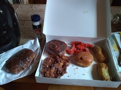 Read moreWonderful Donuts! The story has it, that "Sonny" makes all the donuts fresh each day. I can believe it, because they sure are delicious. The filled items are F-I-L-L-E-D! Not like these franchise places where you'd think it'd kill their mother if they added a decent amount of filling. In fact, with some items, the customer has a choice of fillings, and they fill it right there while you wait (like the chocolate chip log on the left if the picture). If you need any more convincing, I made a two hour round trip for the SOLE PURPOSE of getting some if these donuts! The donuts at the top of the picture didn't travel so well on my motorcycle, but they were still yum yummy. For reference, the box is about 15" wide. When you get there, yes, it's at/in a gas station...