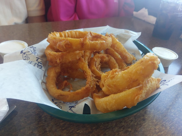 I would also make special note of the accompanying ranch dipping sauce. My insider source for all things Russ', Julie VanVoorst, mentioned "It is worth noting that Russ' makes its ranch from scratch." "But not the batter", retorted Dale. Nonetheless, the ranch was flavorful, with a good mixture of zest and soothing cream, and complemented the onion rings well.