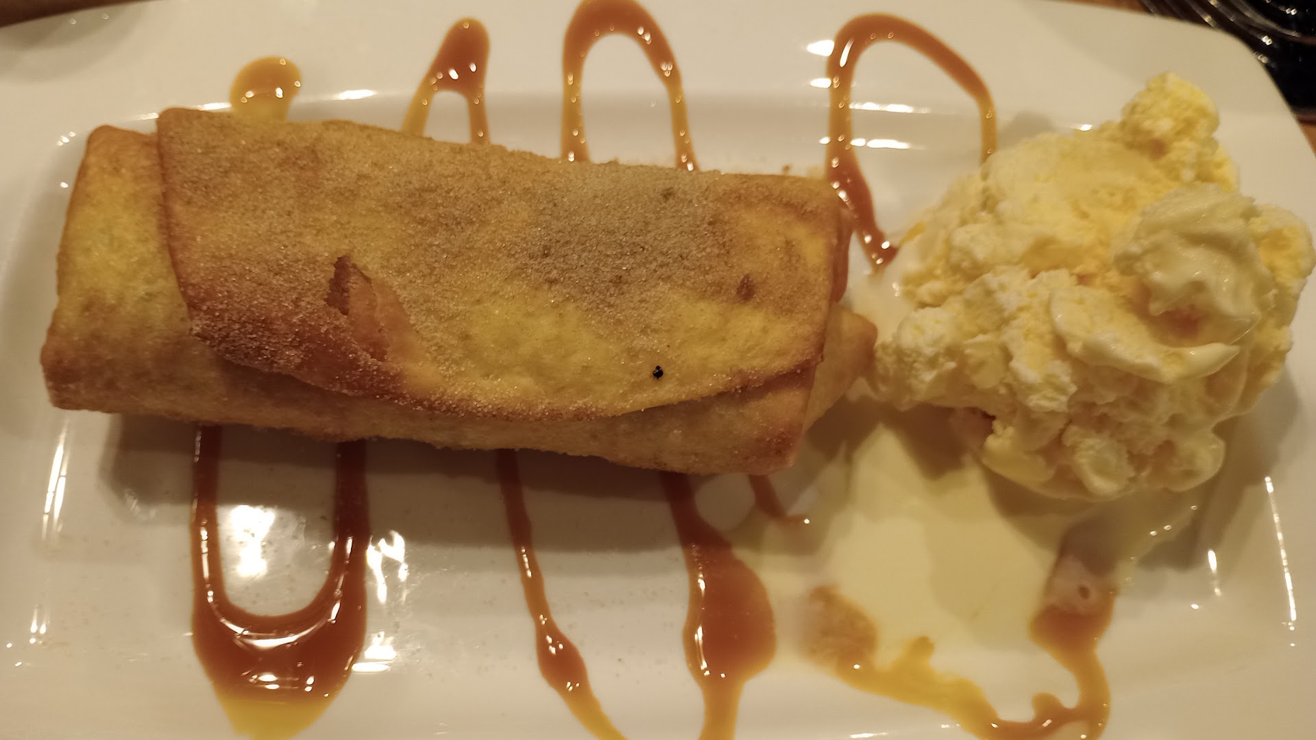 It was Saturday night. They were short staffed and it was pretty full inside. When we pulled up there must've been some event outside finishing up, because there was some loud music playing that had us almost turning around until we realized it wasn't coming from inside the building. The hostest (a transplant from the Midwest, and the kindest, sweetest girl ever!) squeezed us in. It was still a bit noisy because of the crowd, but we could hear each other talk, and there wasn't any loud music that was hurting our ears, so thst was good! We missed out on the Prime Rib (it seemed like everyone in town got there first), but oh, have you tried Cheese Steaks Perogies? WOAH! Yeah, if I wasn't sharing the appetizer that could've happily been my entire meal! We ordered a Steak Quesadilla and Chicken Alfredo as well, and they did not disappoint. We ordered an Apple Chimmichanga with a scoop of vanilla ice cream to share for dessert. It looked fantastic! The Chimmichanga was topped with cinnamon and sugar and the entire dessert was placed on a plate drizzled with caramel sauce. All of that, mixed with that delicious ice cream (which on its own was perfect), was mouthwatering! My ONLY complaint about the food was that the apples inside the dessert were not hot. In fact, one bite was kinda chilly. The waitress offered to take it back and have it warmed up, which would have been fine, but we were so full from our feast at that point that it'll be warmed up at home later and properly enjoyed. We will definitely be back - and with Prime Rib night reservations! (I wish I thought to take pictures of those perogies. Honestly, if you haven't had them, you are...