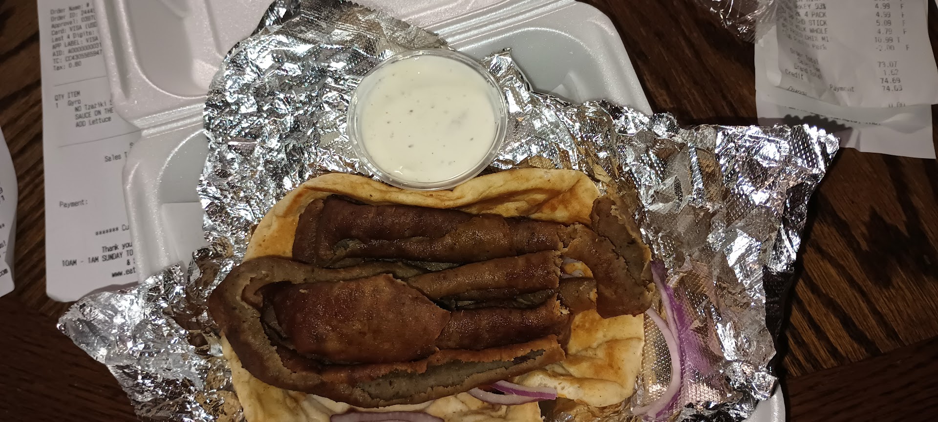 My wife and I went this afternoon. We'd never tried their food and wanted something different. (Technically, I have been once , over a year ago, when i was going to Taco Bell, until I realized they were gone and had been replaced by ANF Gyros. . Anyhow, that visit doesn't count since all I ordered was onion rings.). Anyhow, we each order a Lamb Gyro and we both loved it. It was very loaded with meat and seasoned to perfection. It didn't have that gameyness typical of lamb, but still has good flavor. I mixed their cayenne pepper hot sauce with their Tzaziki and loved it. The only negative I would say is that we ordered it with lettuce added. Both our receipts clearly say "Add Lettuce" but neither had any lettuce. I would expect orders be prepared as ordered. But the service was excellent. We went inside to order, but got them to go. We were in the car driving down University Ave 7 minutes after we were getting out of the car to go inside.