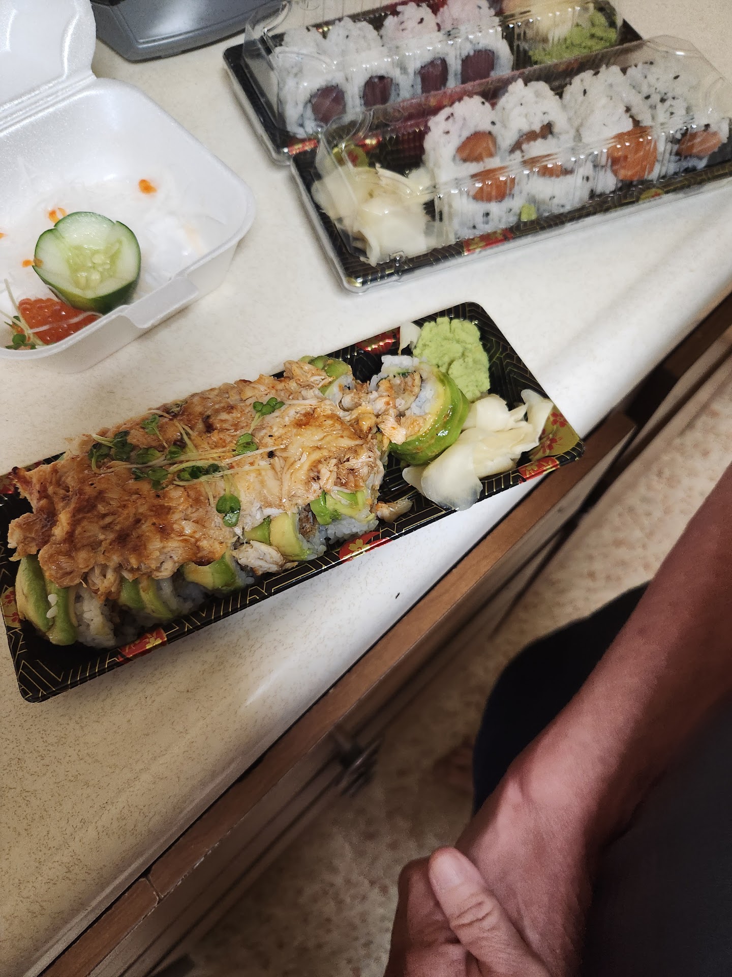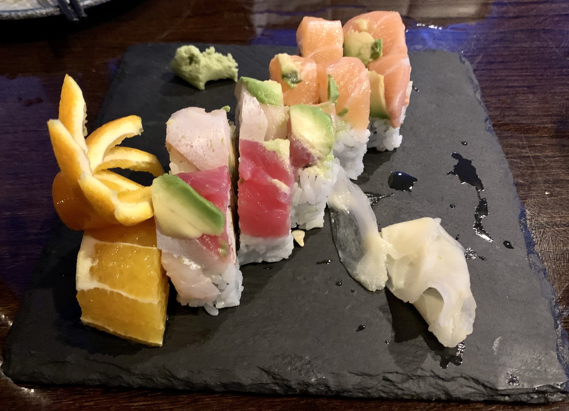 My wife and I always try to get the most simple rolls when trying a new sushi spot - it allows you to really taste the quality of the fish and preparation. I have to say that this was really well prepared and fresh. You could taste each ingredient and they did a couple really creative things I'd never tried before (lemon zest and roe!). The ginger seems much higher quality than most places and the wasabi is average/above average (fresh ground wasabi is always best). You can also tell it's high quality because it's more filling - my wife and I split 4 rolls and 1 small appetizer and we left feeling stuffed.