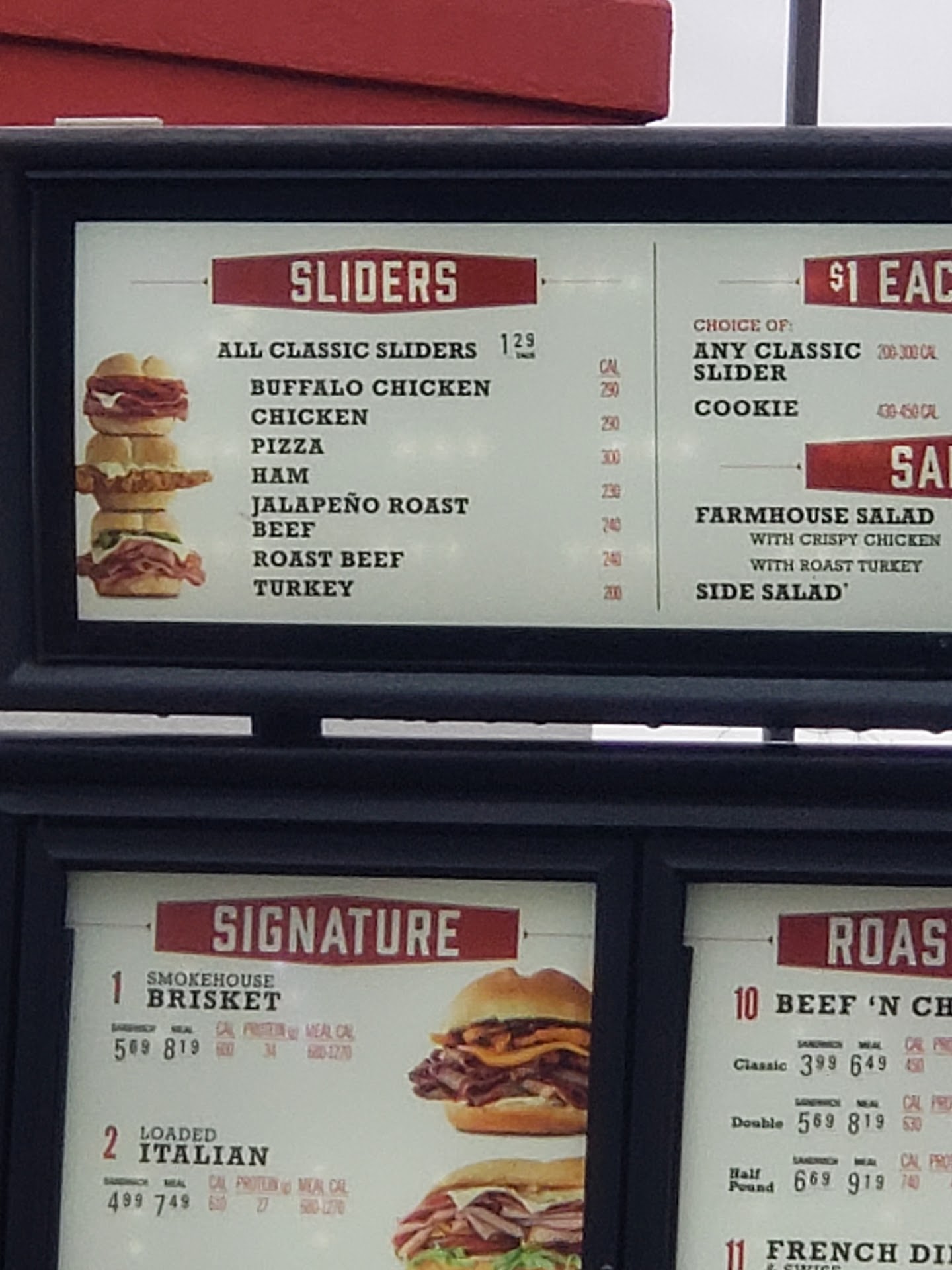 Abysmal. Maybe I caught them on a bad day, everyone has them, but it was particularly bad timing for me and Arby's. My daughter has always hated the place, and I have always loved it. For decades. I finally convinced her to try it one more time before casting final judgment, and so we went. We waited in the car almost 20 minutes for them to NOT bring our order out to us. I eventually went inside to get it. Barely an apology from the disimpassioned staff. When I did, and brought it out, the food was flat-out miserable. The chicken in the Cordon Bleu was card-board thin, and tasted like it. It was not hot, it was not fresh, it was overcooked, it was flavorless. I looked at my daughter and said "I give up. You win. I'll never make you try Arby's again." Thanks to this one branch, this one day. You only have one chance to make a first impression. Well, my daughter gave them a second chance. Fail.