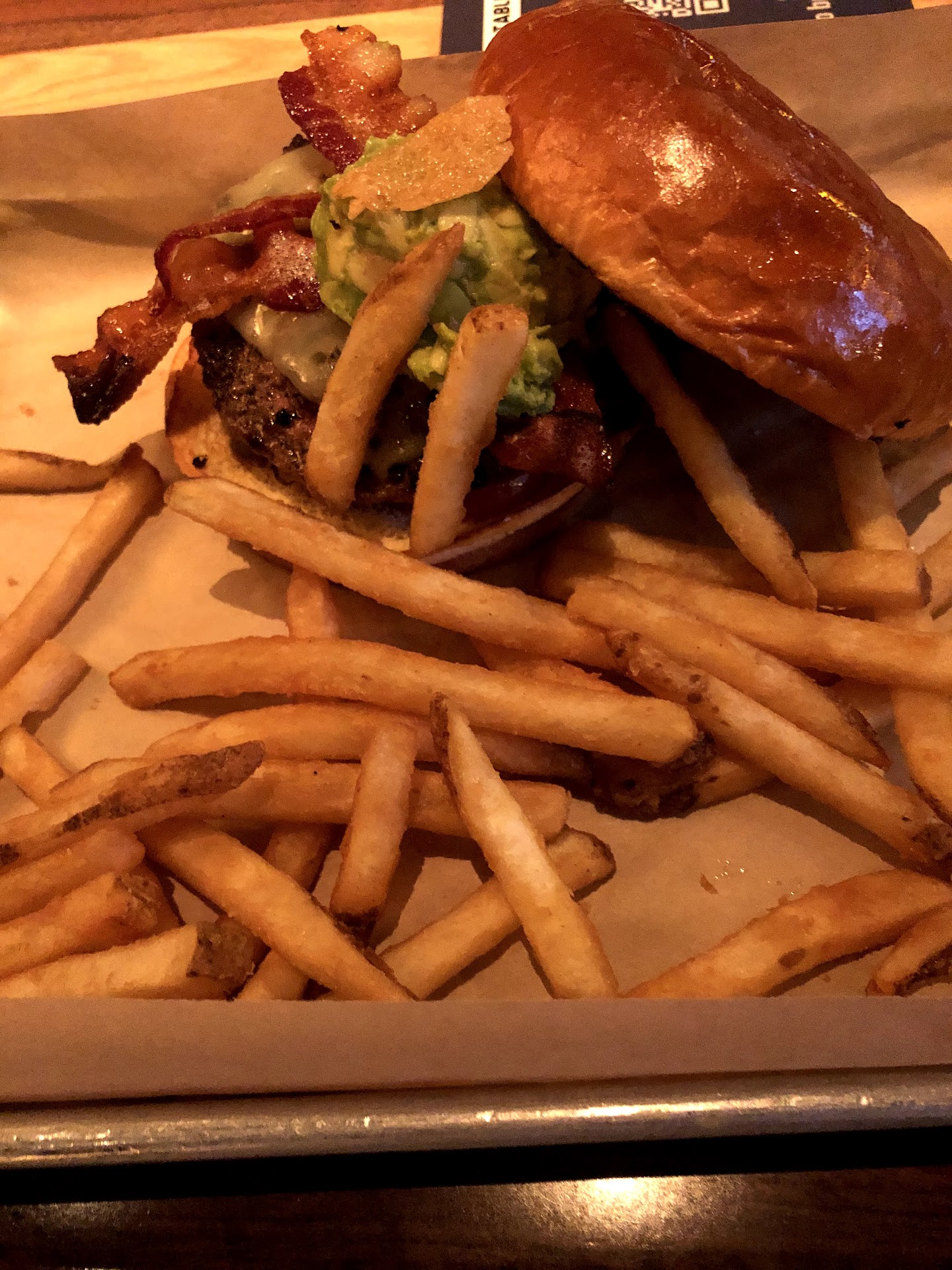 Next came our entrées. After our appetizers, which pretty much filled us up, we decided on sandwiches except for one person who thought they could eat a whole deep-dish pizza! (Word to the wise...uh, no. You will NOT be able to finish it! Lol) I just HAD to try the craziest combination sandwich I've ever seen on a menu and boy, did it deliver! On a really nice soft and fresh bun, you get tomatoes on the very bottom, avocado, a country fried steak patty, pepper-Jack cheese, country gravy and a fried egg. Crazy, right? Wow! So good! I'd order it again and again but there's so much more that I want to try! Lol