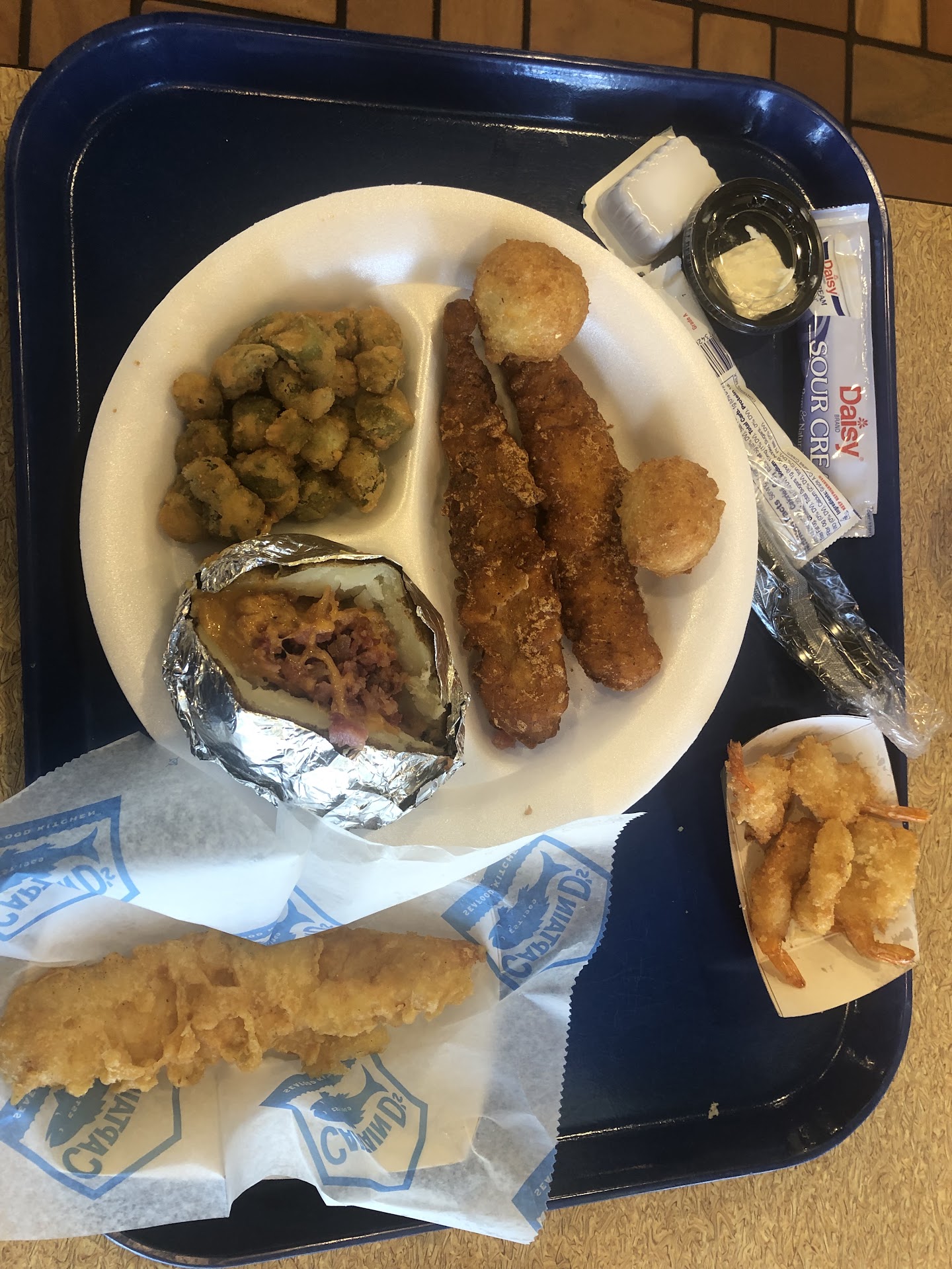 The lady who is always in the drivethru is amazing. I regret that I have been slacking on my reviews and did not remember her name but next time I will do a review just on her...she's that good. I have specific requests because of my diet and she worked it several different ways ringing it up to save me the most money. A lot of places figure if you don't know how the deals work...that's your problem. Not her. Actually, I'm going to call them right now and ask for her name...hold on a sec...her name is Sheila!!! She's great!!! Any way the food that I ordered was 1pc of grilled Tilapia and 2 grilled shrimp skewers with no rice. Green beans and broccoli were my sides I didn't get to eat it until I got home and when I opened the box.....wait for it.... everything was individually wrapped in foil to keep it hot. Wow! Of course the green beans and broccoli were in styrofoam containers but everything was still very warm at least. It was delicious. I love Captain D's original crispy battered fish...a lot... But I'm glad that I can still eat here and have healthier choices. Every time my wife and I come here it is great. If y'all are not already you should be a training...