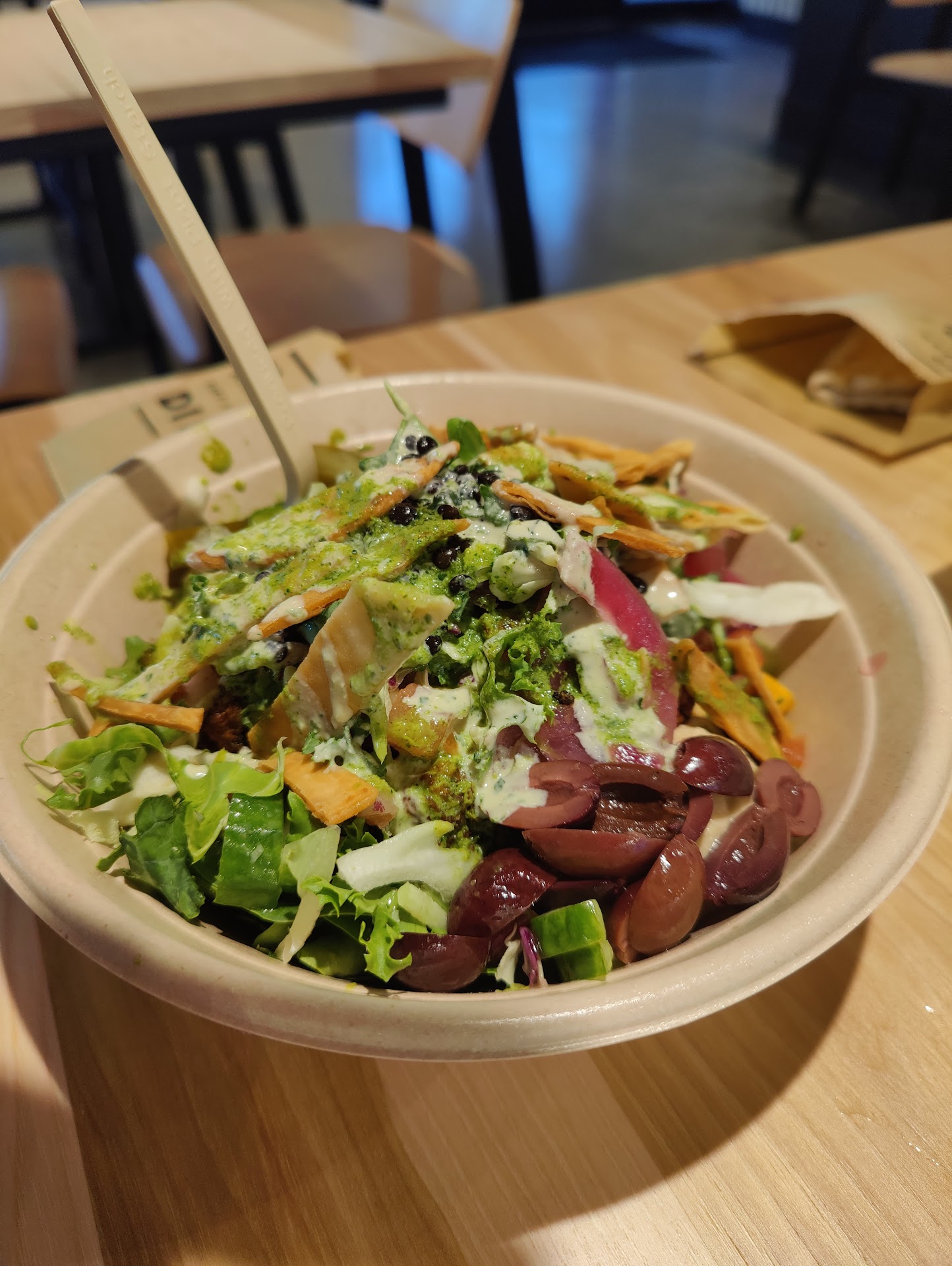 If this restaurant looks familiar, it's because CAVA bought out Zoe's kitchen and they serve similar Mediterranean flair, but with harissa being prominent on the menu of flavors. Cava has the benefit of offering multiple raw mixed vegetable options as a base instead of just boring lettuce. You can order preselected combinations or create your own bowl or pita. Once you have selected pita or bowl as your base, you can select a combination of rice and fresh veggies before moving on to proteins. From there you can pick a variety of fresh toppings such as pickles, avocado, feta, cucumbers, tomatoes etc. The last step is the sauces on top, which includes things like tahini or a spicy harissa sauce.