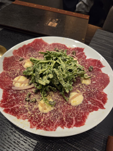 From the moment I walked in, the atmosphere was elegant and romantic — soft lighting, smooth jazz playing, and even the aged meat on display with tags showing how many days each had been aged. Such a classy touch!