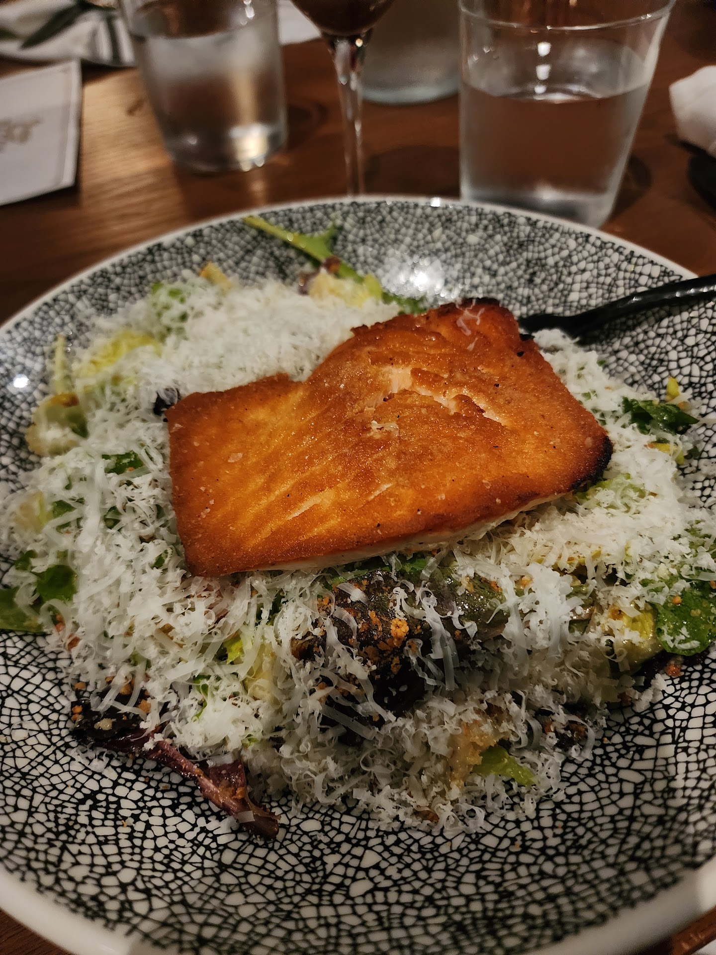Menu is a mix of easy and upscale bar and modern American so there’s something for everyone. Everything we’ve tried in the several visits we’ve made has been delicious and we’ve never left unhappy or dissatisfied. Fish and meats were always expertly cooked (not always easy with a filet or fried chicken)—a few more lighter (poultry/seafood) warm entree items and maybe shrimp somewhere would be great. Salad selections are delicious with the option to add chicken, salmon or beef—so that’s an option but sometimes you just want something warm for supper. Maybe salmon or shrimp for the salmon bowl?Vegetables were fresh and plates arrived fairly timely. When we first visited in December that wasn’t always the case but it’s very much improved. All entrees were wonderfully plated.