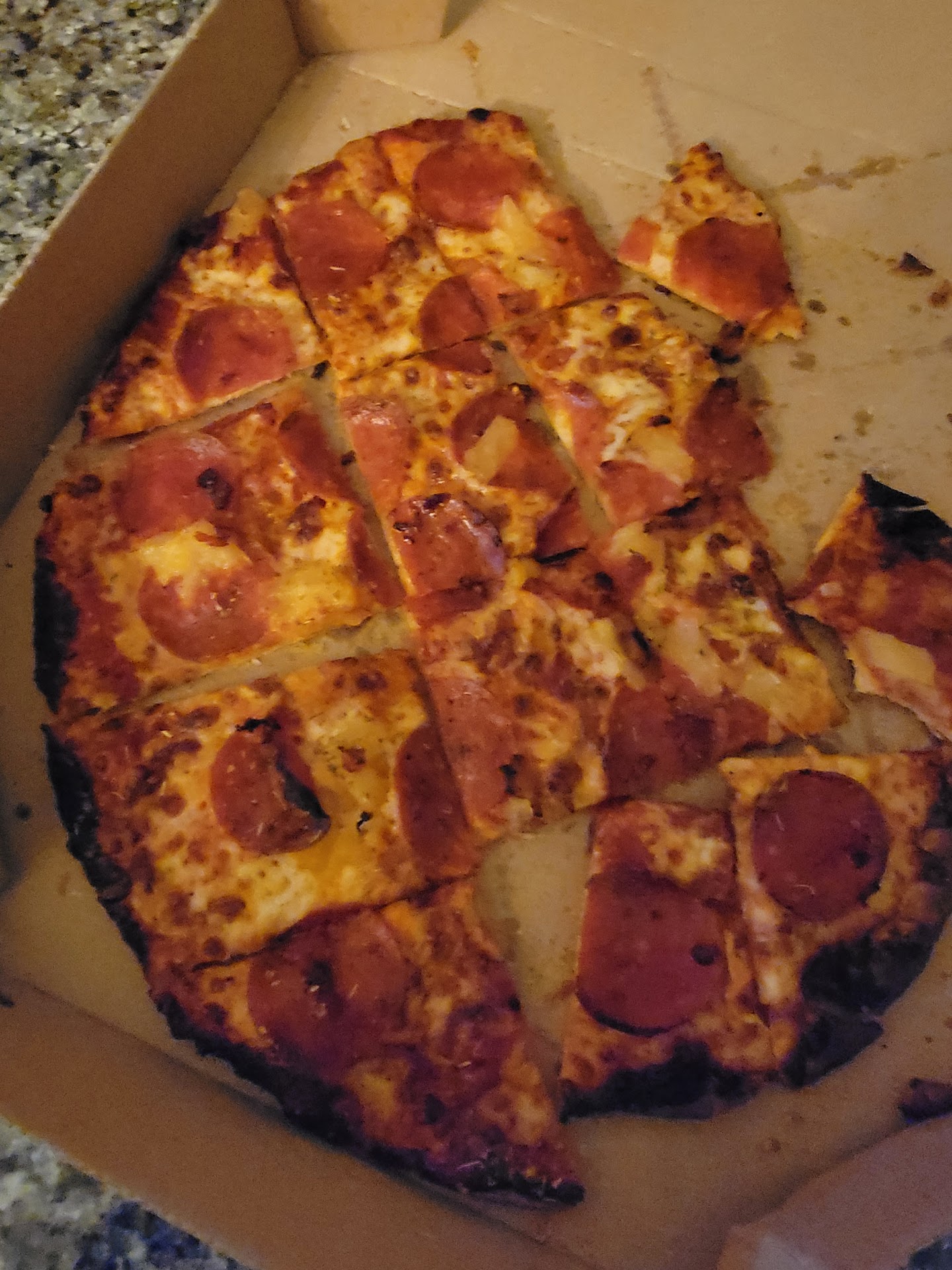 As far as the food, well, my 2 year old & I weren't too fond of the extra dark brown, crispy pieces on the pizza.. That pizza, by the way, lacked the regular amount of cheese, PLUS the extra I paid for. 🤦🏻‍♀️ There isn't a cheese shortage, friends.. don't be stingy with the cheese.. No person in their right mind has said "Ooo, no thanks, that's TOO much cheese on a pizza.." it's just un-American & there's too much negativity in the world to have a cheesless pizza. Speaking of the gooey goodness.. Two words.. Cheesy. Bread. Ours was baked to perfection, could have used a handful or two of more cheese for the bare spots, but it contained more cheese than the large pizza with "extra" cheese.. Paid for 2 icing cups, received one.. BUT WAIT.. I ordered 10 wings & lucky me, I scored an extra one! This is acceptable. 👌🏻 :: BTW, to a corporate side of Dominos, please find a new level of standards to choose your wings.. It never fails, yours are full of fatty skin so we have to pick at them so we only get meat, but they are so dang good that its almost worth ordering wings every time. All in all, pretty happy with the food & service for this particular order, (4/15/2021) minus the lack of cheese situation… Someone, please go get that person a candy bar of their choice & sing "The I Love Cheese Song" by:...