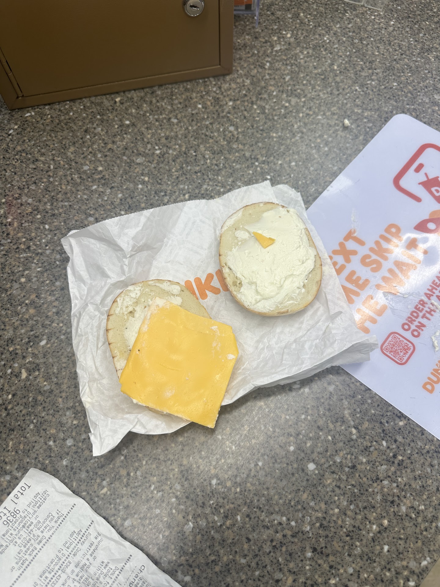 My less cream cheese bagel was good and had just enough cheese. So if you're not into a thick layer of your bagel filling, let them know "less"! (Lesson learned!)