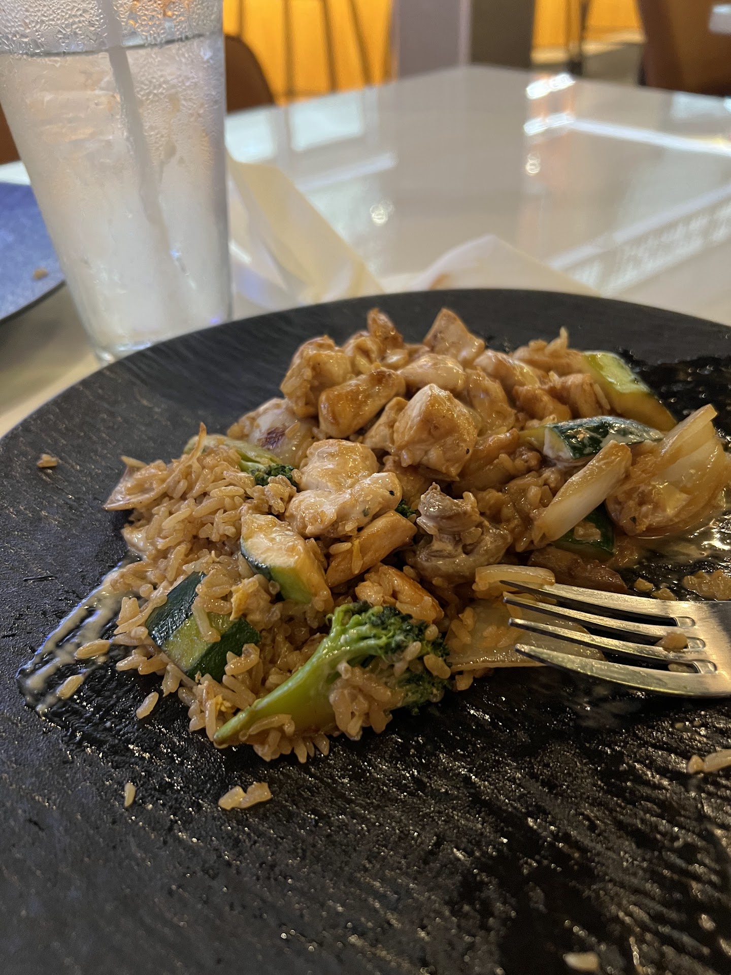 I really hope this place is here to stay. They have a variety of items in their menu from sushi to poke bowls as well. They have a nice bar area and a sushi area too where you can see the sushi chef at work. While we sat down we saw so many people come close to the restaurant and take a glance at the menu. I wish more people could come an enjoy this place. Everything is fresh and we had no complaints. For a $12.99 chicken lunch special offering , that can't be beat. Other restaurants charge almost twice as much.