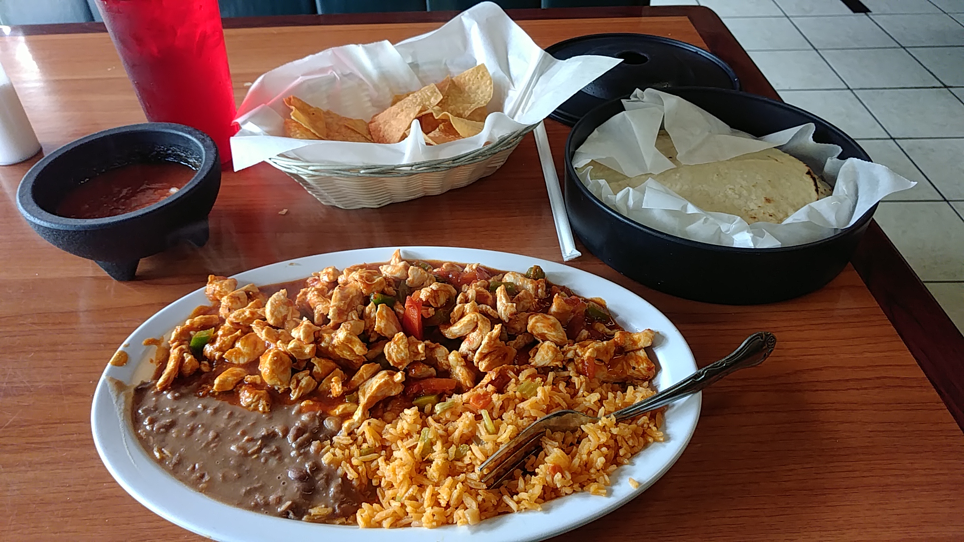 Read moreThe waitress brought me some tortilla chips and red salsa after seating me. They were good. I ordered the Pollo Adobo platillo and asked for some tortillas to go with it, which I received. There were four tortillas and they had been heated on a flat iron, so they were good. The chicken was delicious! It had fresh chopped vegetables and I liked the sauce. Spicy, but not mean spicy. I also liked the rice. I don't eat refried beans so I can't comment on those. The other dishes I saw the wait staff walking around with looked good, too. I came here after mountain biking at Chicopee Woods. Low prices, generous portions, and yummy. Highly recommend. I will be going back to...