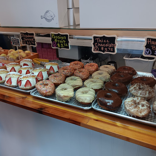 Read moreSprint don't run to Flatfish Doughnuts. Heard a ton about them and finally found myself in the area and I stopped by. The shop is not big by any means but felt warm and inviting. Theres a handful of tables for seating but mainly people come in order and leave. The bakery was offering three types of glazed doughnuts (chocolate, salted brown butter, and sprinkles) and 6 filled doughnuts (chocolate velvet, cold brew coffee, pecan, fruity pebbles, tropical cheescake, and a "dagel"). The dagel was unique as it was advertised as a "everything bagel but in donut form". I ordered 4 filled doughnuts (cold brew, choc velvet, cheesecake and fruity pebbles) and 2 glazed (salted brown butter and sprinkles) . All were absolutely delicious. My family raved about the cold brew and chocolate velvet. My personal favorites were the cheescake and salted brown butter. Come early as they close once they are sold out. For reference I came at 9a on Saturday and they already sold out of the chocolate glazed. The staff are super friendly and they offer deals if you buy 6+. The specials change regularly so be sure to follow them on instagram to get updates. They also have updated information about allergies and...